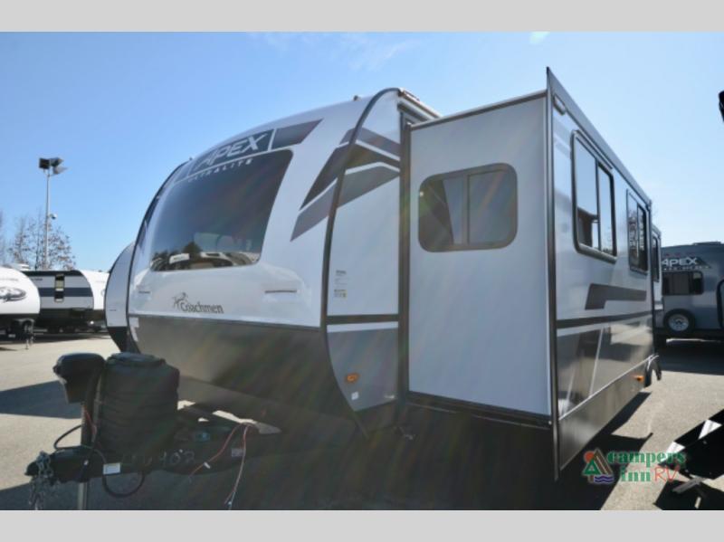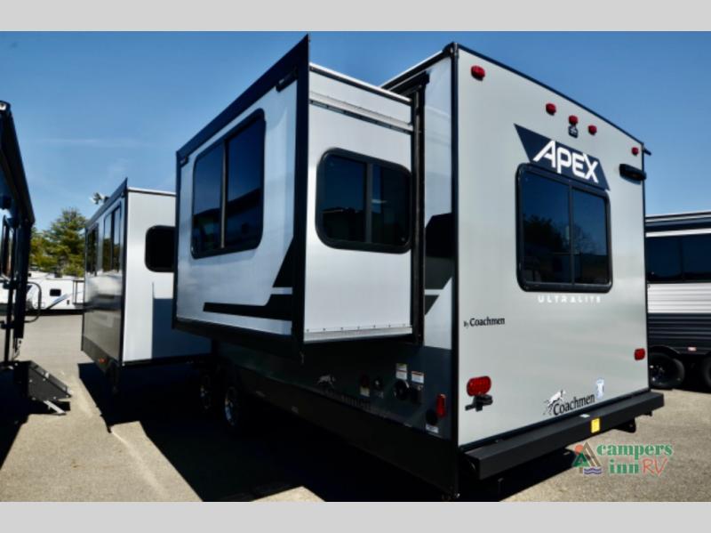 A Camping We Will Go and go and go and go! Begin at Campers Inn RV! APEX ULTRA LITE PACKAGE; 15K AIR CONDITIONER UPGRADE; 50AMP SERVICE W/PRE-WIRE FOR 2ND A/C