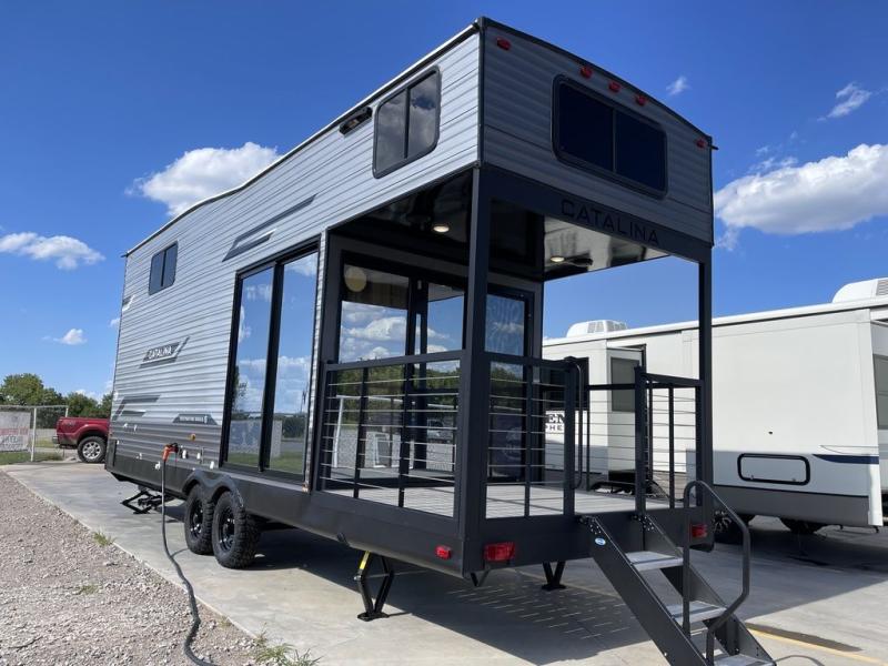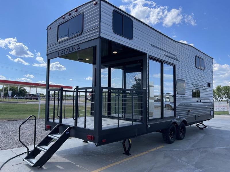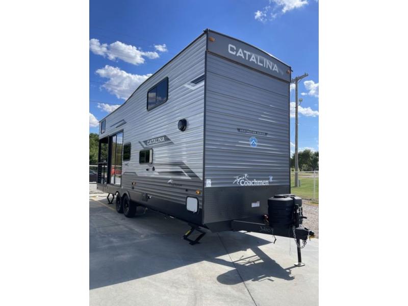 With any Catalina Destination trailer by Coachmen, you will enjoy comfortable extended stays wherever you decide to set up camp! The full length frame outriggers add strength to each unit, along with a seamless Alpha Roof membrane and Norco electromagnetic, powder coated chassis. You will love the open views provided by the large front bay windows, plus there are GE appliances, woodplank linoleum flooring, and hard valance window treatments to make your space feel more like home. The One Control Smart RV tech monitor panel uses the LCI OneControl app to let you control your units functions right from your smart device, and the RV-Link 4G Remote Connect, Wi-Fi, booster, and extender prep gives you the option to stay connected while you're away from home. Head outside to find a convenient "Leash Link" quick hookup D-ring for your furry friends, premium JBL exterior speakers, flush mount baggage doors for your gear, and the list of amenities goes on!