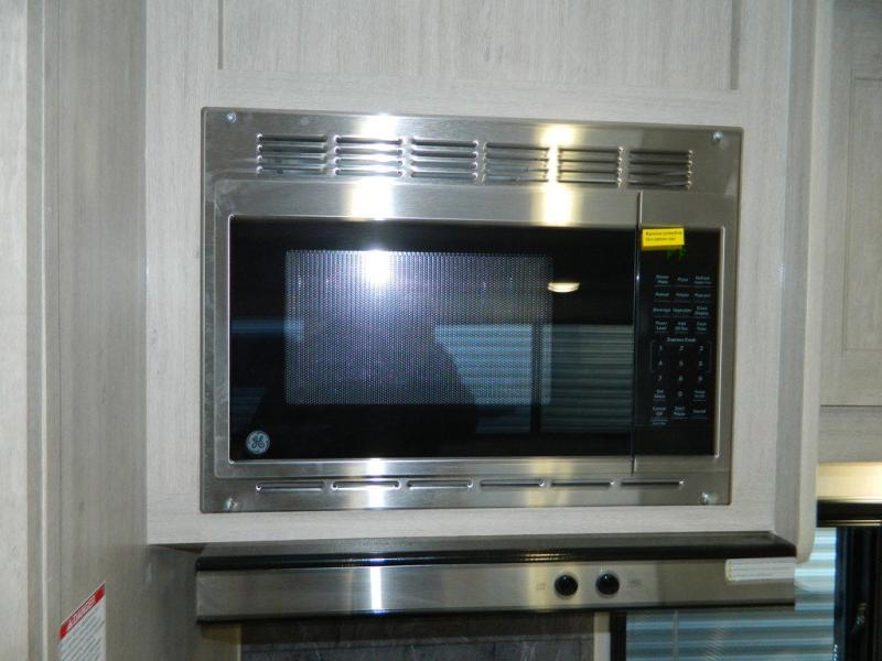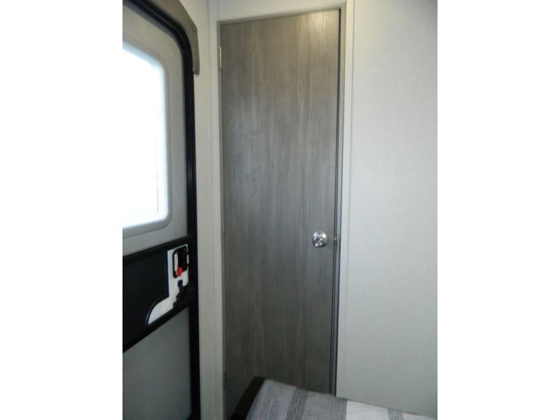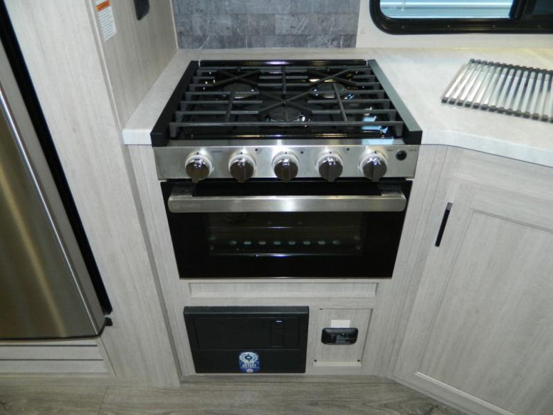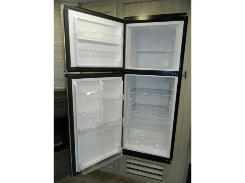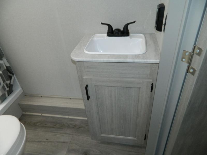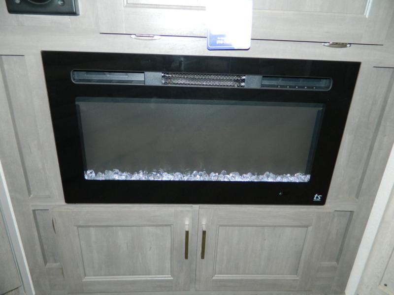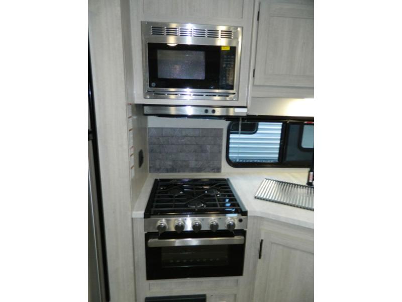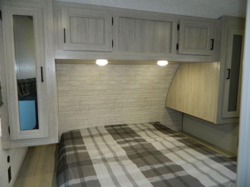 When you enjoy camping with your own accommodations and space for the whole crew, hitch this trailer up and head to the campgrounds! After loading everything easily thanks to the dual entry doors and all the interior and exterior storage, you will have no worries that you left anything behind. The electric awning is easy to set up, like the large slide out, and the awning offers multicolor LED lights to choose from by using the remote. When you are outside the cook might like to make a meal using the outside camper kitchen. The interior kitchen offers full amenities including a pantry, and everyone can enjoy the angled entertainment center. There are double-size bunks with a ladder for the kids and a walk-around queen for the owner to sleep on, plus furniture in the living area that doubles as additional sleeping space!