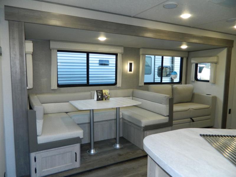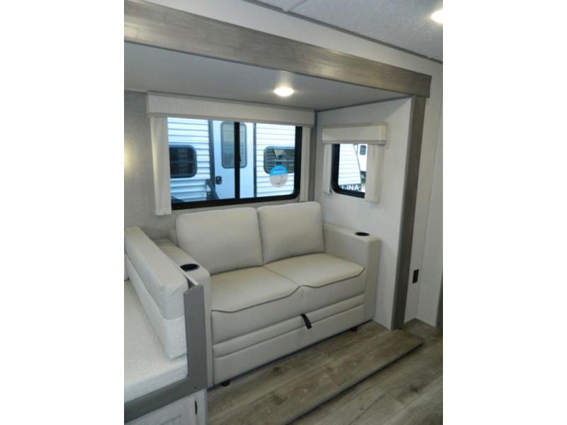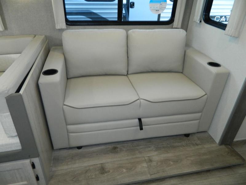 Each Catalina Legacy travel trailer by Coachmen is constructed with a cambered structural steel I-beam frame for added strength and support, plus an enclosed and fully sealed corrugated underbelly to extend your camping season. There is also a seamless Alpha room membrane, R-7 insulation throughout, full length frame outriggers, plus many more durable construction materials. You will love the 6' 9" interior height, along with Congoleum woodplank linoleum flooring, seamless Thermofoil countertops, and hard valance window treatments. There is an RV-Link 4G LTE connectivity with WiFi booster and an extender to keep you connected to the outside world as you camp, and the JBL Aura cube multi-zone function media center is sure to keep you entertained all weekend long. Choose a Catalina Legacy today!