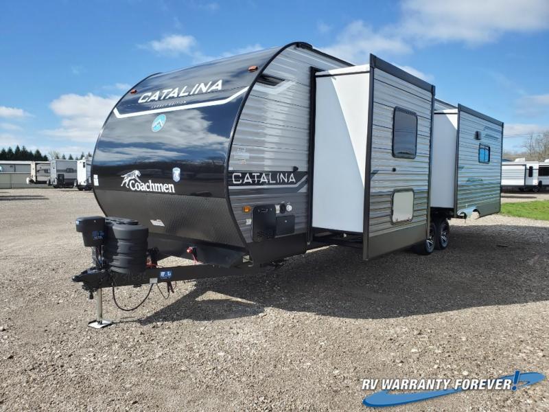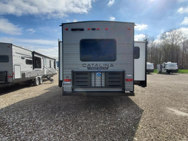 Each Catalina Legacy travel trailer by Coachmen is constructed with a cambered structural steel I-beam frame for added strength and support, plus an enclosed and fully sealed corrugated underbelly to extend your camping season. There is also a seamless Alpha room membrane, R-7 insulation throughout, full length frame outriggers, plus many more durable construction materials. You will love the 6' 9" interior height, along with Congoleum woodplank linoleum flooring, seamless Thermofoil countertops, and hard valance window treatments. There is an RV-Link 4G LTE connectivity with WiFi booster and an extender to keep you connected to the outside world as you camp, and the JBL Aura cube multi-zone function media center is sure to keep you entertained all weekend long. Choose a Catalina Legacy today!