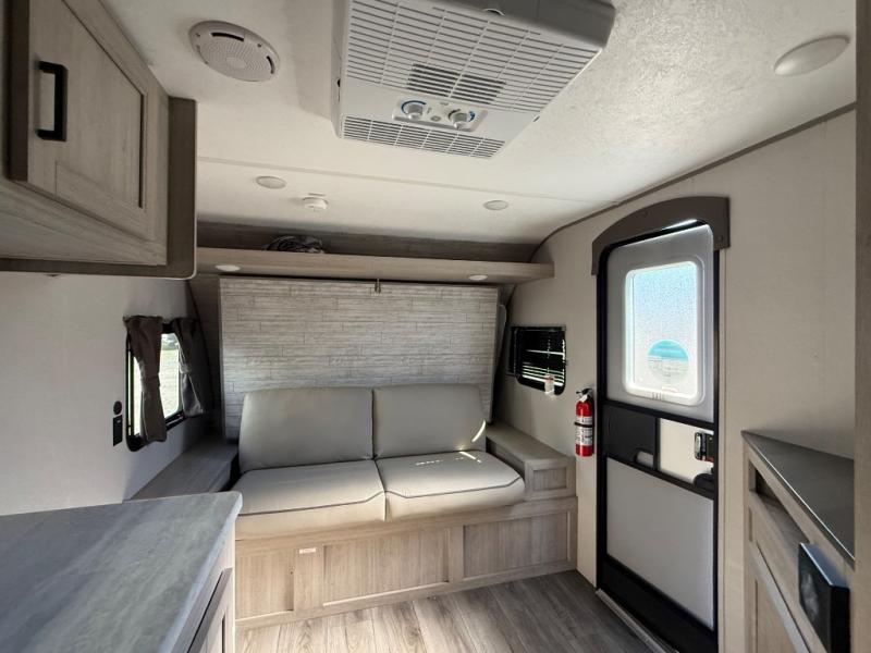 Camping for two, anyone? This cute Catalina Summit Series 7 is the perfect camper that provides you with both a living space and a sleeping space all while keeping it under 20'. This unit comes in at 19' 6" to be exact, and with the 60" x 74" Murphy bed layout you can have both a comfortable place to sleep at night, and seating space on the sofa during the day. A rear bath offers a 36" x 30" shower, toilet, and linen cabinet for your towels and toiletries. The sink is just outside the bathroom door on your left. For cooking inside, you will have a GE two burner cooktop and a GE stainless microwave oven, plus plenty of solid surface countertop prep space. On the outside, a 10' power awning with a multicolored LED light strip will make a wonderful outdoor living space to enjoy both during the day and at night keeping you protected from the elements. And the large front pass-through storage space allows you to take along all of your necessities to have a great time.