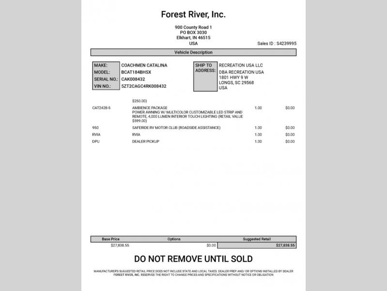 BRAND NEW 2024 Coachmen Catalina Summit Series 7 travel trailer 184BHS