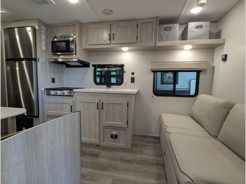 With any Catalina Summit Series 8 by Coachmen you will enjoy an affordable travel trailer packed with at-home comforts! The solid construction includes a Norco electromagnetic powder coated chassis, a seamless Alpha roof membrane, and full length frame outriggers for maximum support and durability. Dexter EZ lube axles with leaf spring suspension and self adjusting brakes provide smooth towing from home to campground, and the premium exterior graphics package is sure to turn heads as you travel down the highway. You will love the features included, such as a JBL Aura Cube media center, magnetic baggage door latches, 4,000 lumen interior touch lighting, LCI One Control, and the list goes on!