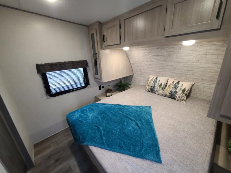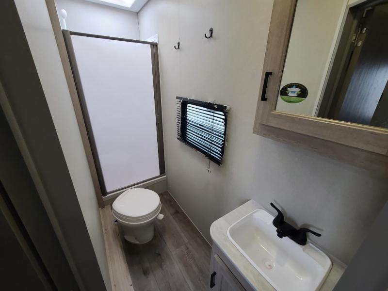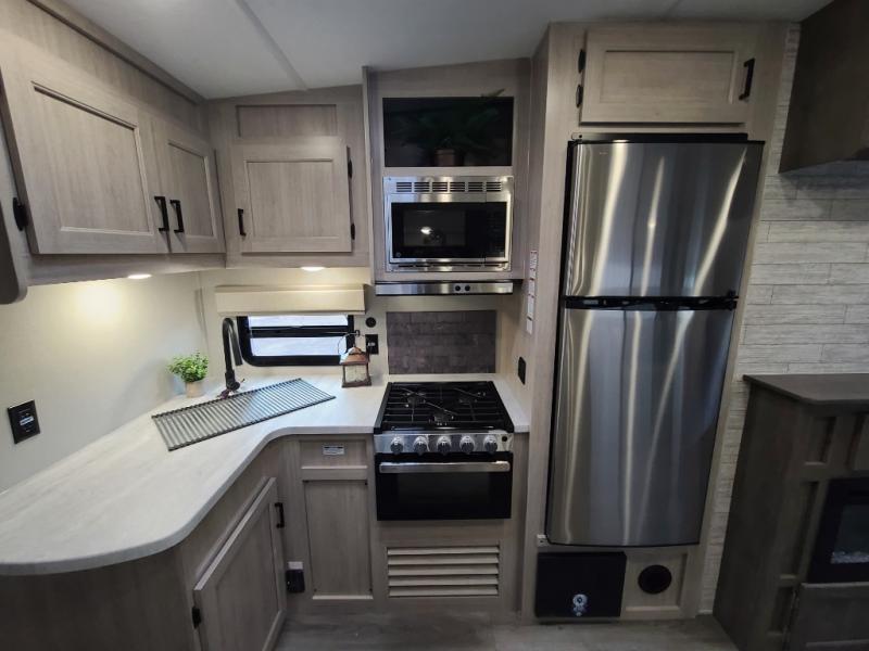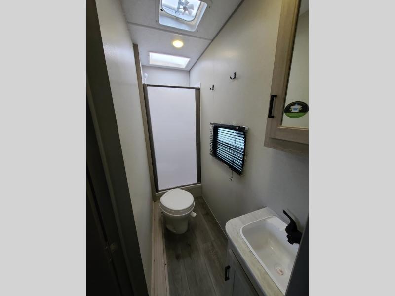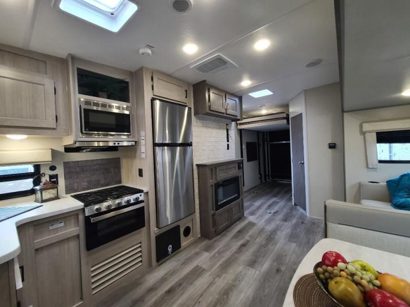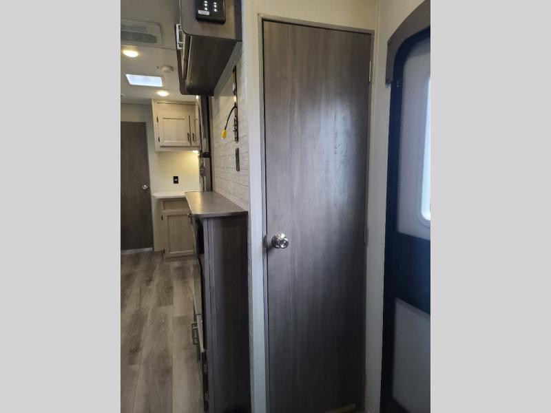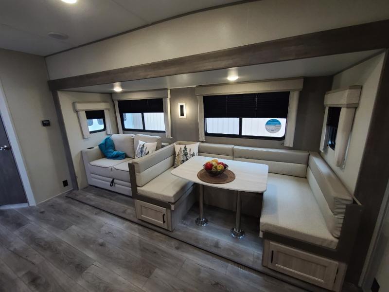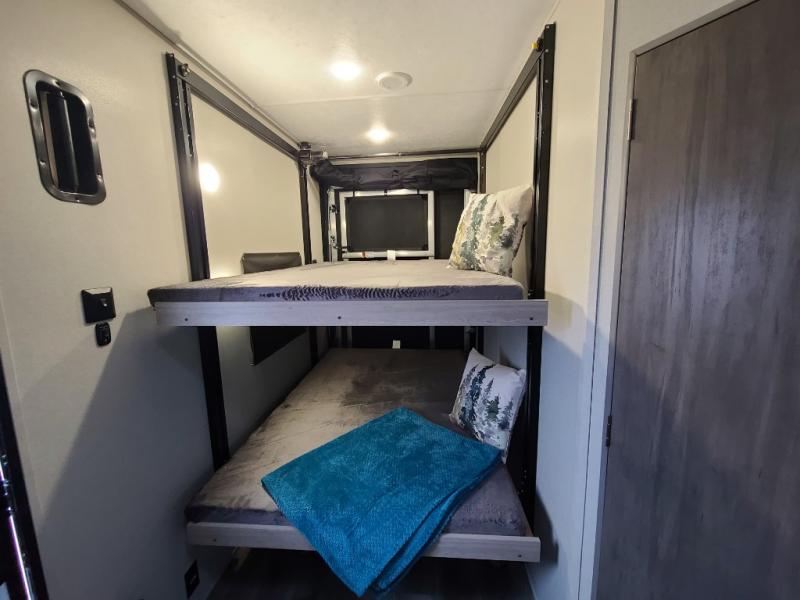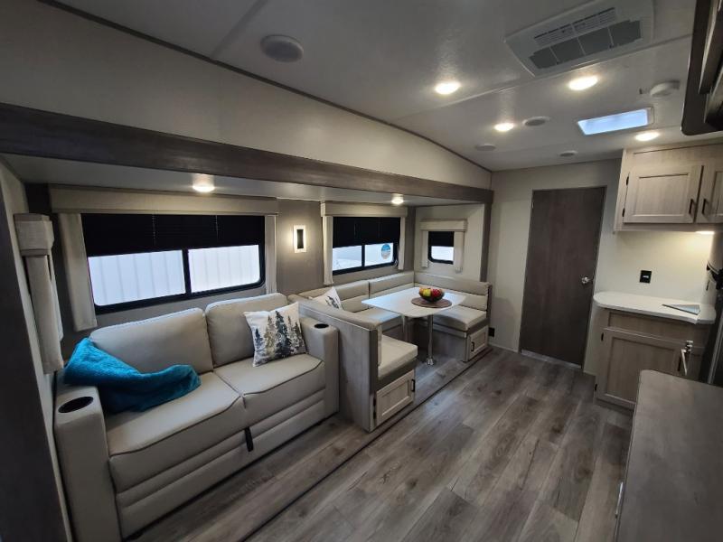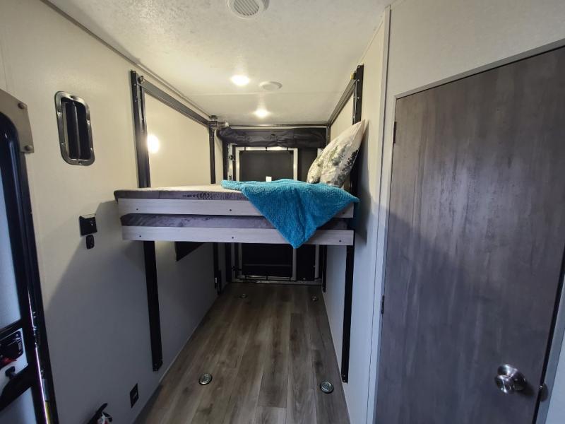 The best looking, most affordable toy hauler is found in the Catalina Trailer Blazer by Coachmen. Each one is constructed with a seamless alpha roof membrane, an enclosed and fully sealed underbelly, and a cambered structural steel I-beam frame for added support. There is a rear loading cargo door with a 3,000 lb. capacity, a black out screen wall with a zip walk-thru and windows, plus 500 lb. tie-downs to secure your toys. You'll love the interior with its Congoleum woodplank linoleum flooring, pleated night shades, and LED interior lighting. Head outside to find an electric awning with multicolored LED lights and a remote, a 15' Toy Loc cable, a "Leash Link" quick hookup D-ring for pets, and upgraded aluminum wheels. The Catalina Trail Blazer also comes with RV-LINK 4G LTE connectivity with a WiFi booster and extender, a JBL Aura Cube media center, plus premium JBL interior speakers for your pleasure!