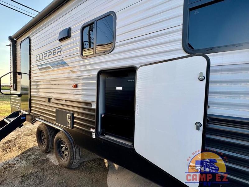 With any Coachmen Clipper 5K Series travel trailer, you can experience affordable camping with your family with the same comforts and quality as the bigger trailers. Each is built on a BAL NXG frame, and includes a seamless one-piece TPO roof membrane, easy lube axle(s), and HUCK bolt assembly construction. The interior offers backsplash in the kitchen, an 11 cu. ft. 12-volt refrigerator, sink covers for added counter space, and a foot flush toilet, plus more. Choose an easy to tow Clipper 5K Series, and start enjoying the great outdoors without breaking the budget!
