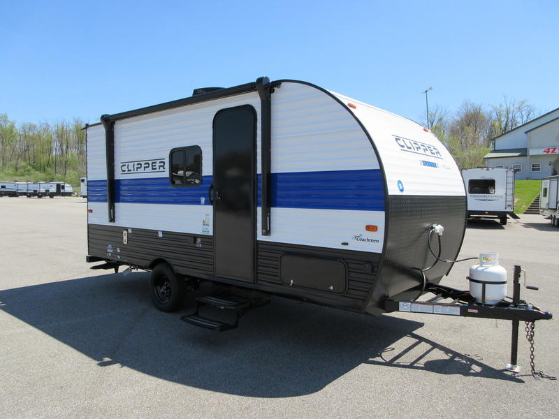 Any Clipper Cadet travel trailer by Coachmen RV provides you a lightweight and easy to maintain towable for your small truck, SUV, or mini-van. All Cadet campers are under 3,000 lbs. and are just 7' wide making them easy to tow, and easy on your pocketbook. These are perfect units for first time owners making the leap from tent camping to their first RV. With BAL NXG Frame and HUCK Bolt assembly, and a seamless one-piece TPO roof membrane, your Clipper Cadet will provide you years of use. You will appreciate the extended height diamond plate protection to keep road debris from damaging your unit, and two rear stabilizer jacks keep you stable in camp. Jumbo pass-through storage allows you to take along the gear that you need, and all of the interior features will have you enjoying your camp experience to the fullest. Make the leap today and choose your favorite Clipper Cadet travel trailer!