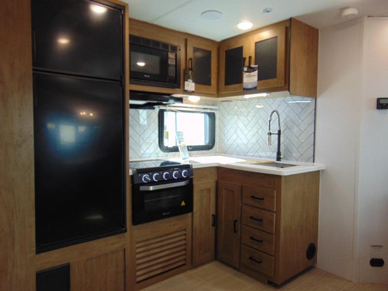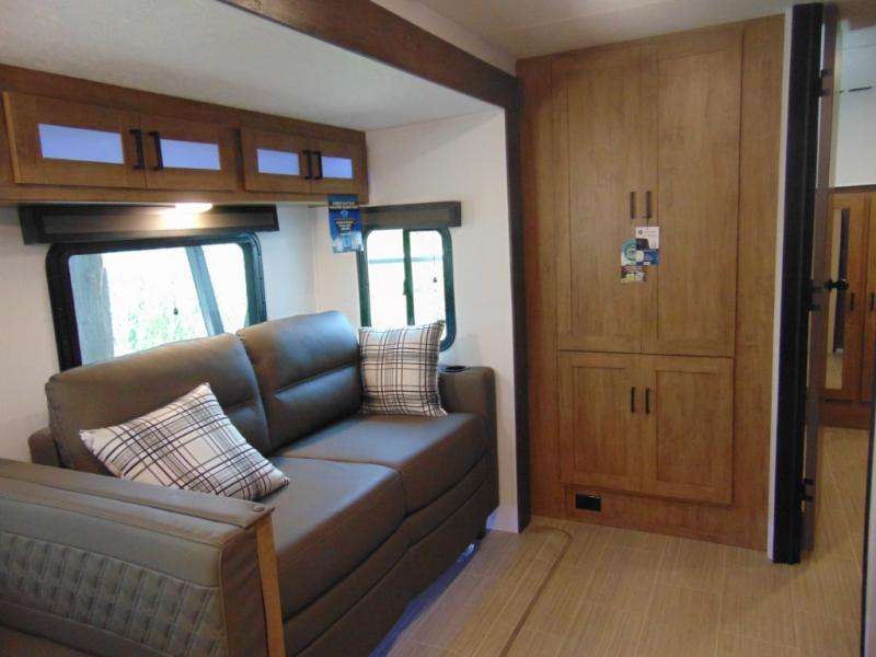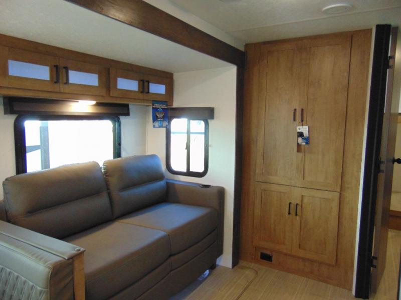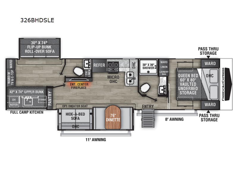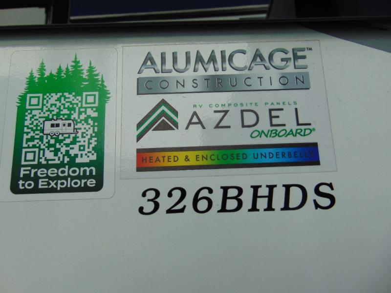 The 326BHDSLE stands out with its Azdel composite construction, laminated aluminum-framed walls, and a heated/enclosed underbelly for four-season camping. Residential-style kitchen appliances, solid-surface countertops, and a large pantry add to the luxury and function. Climate comfort is handled effortlessly with a powerful A/C and furnace.