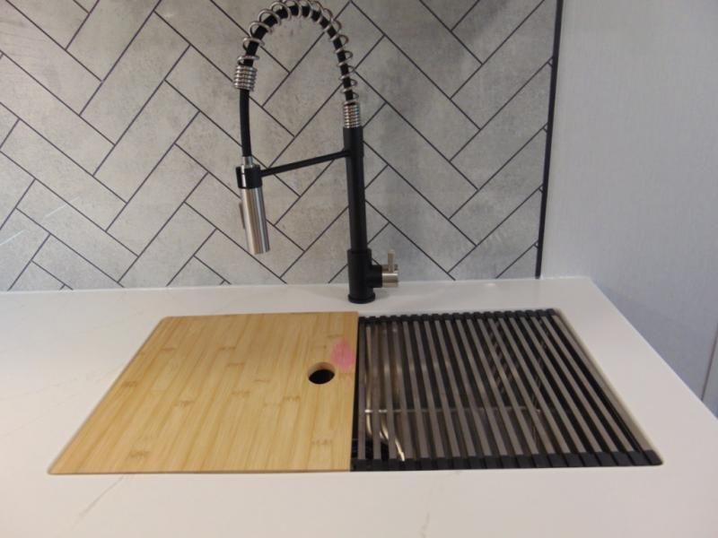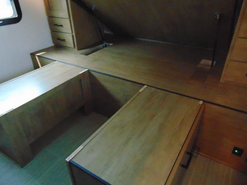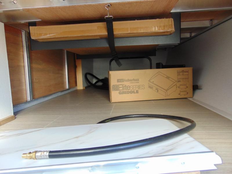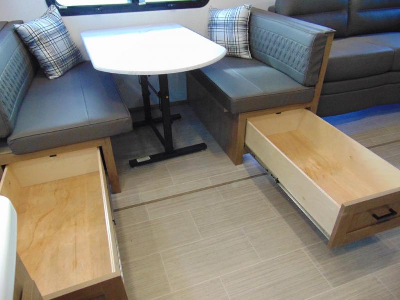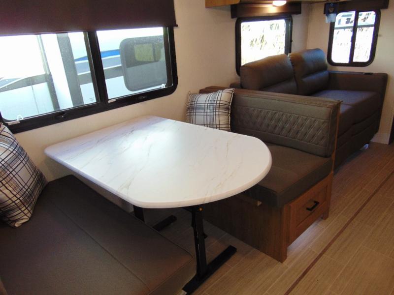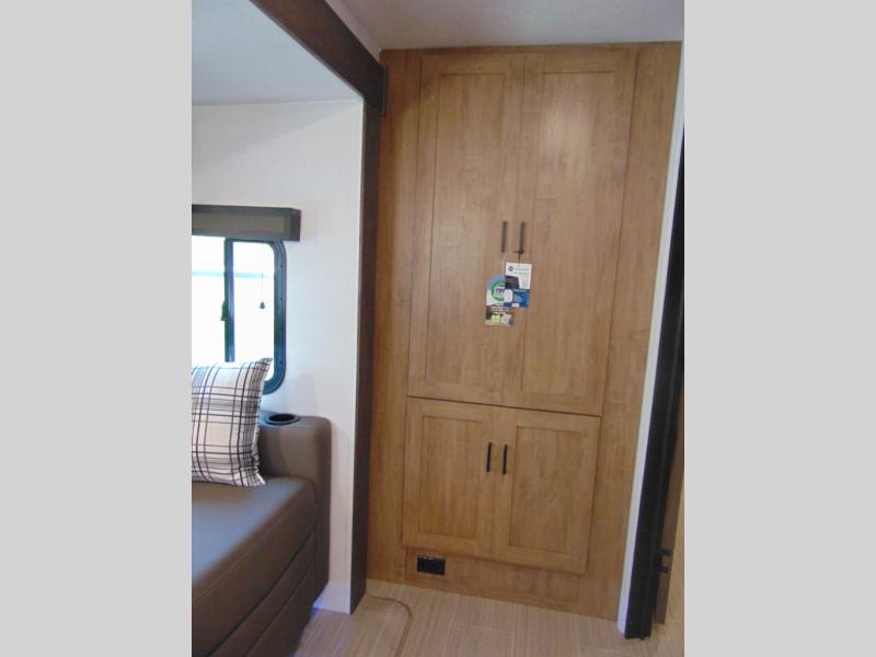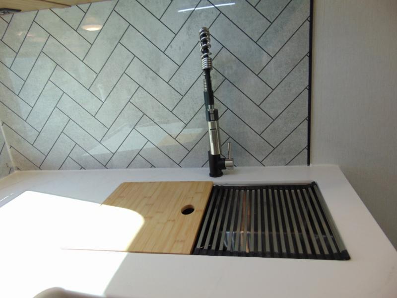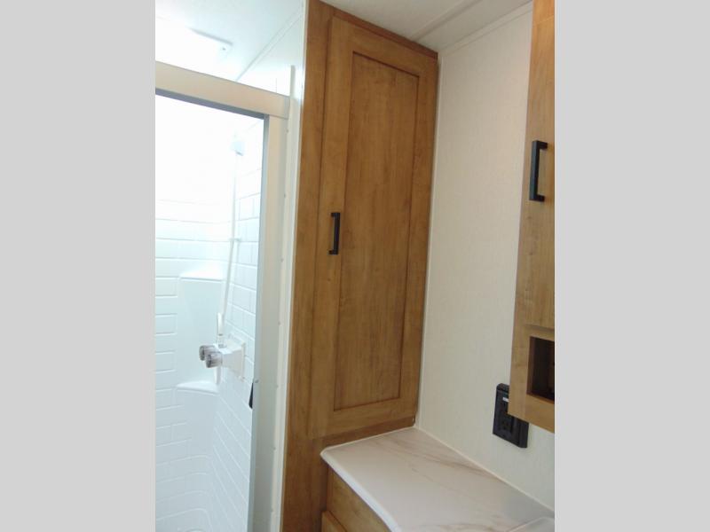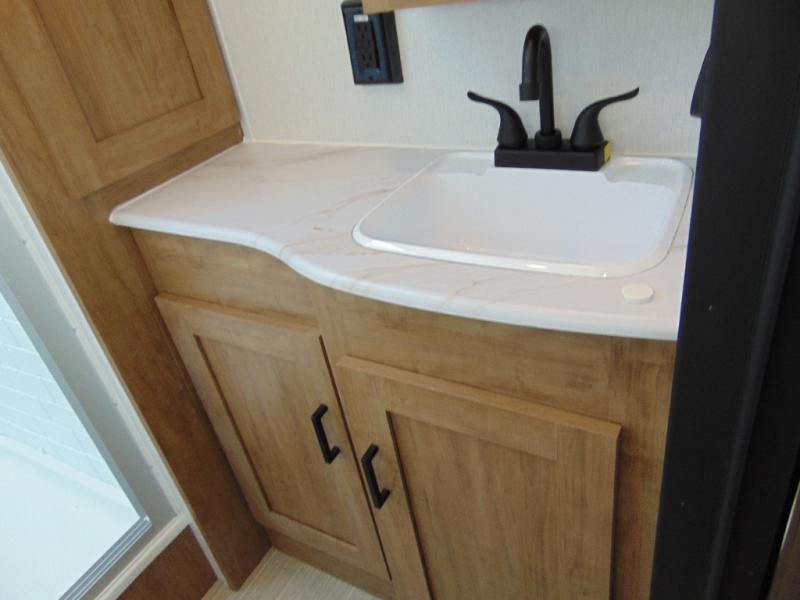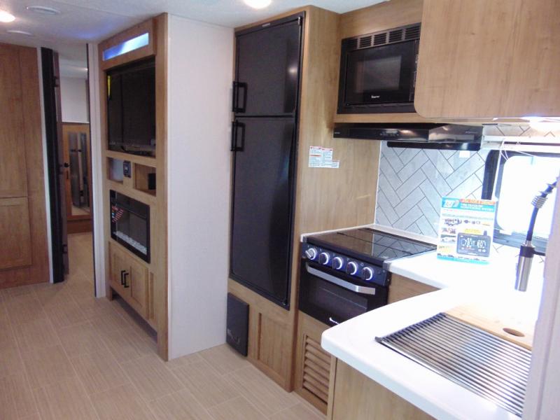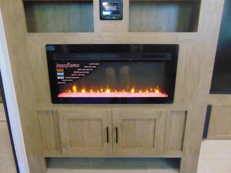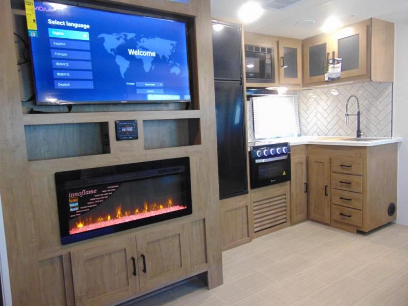 Take your tailgates and campfire nights to the next level with the full outdoor kitchen—ideal for grilling burgers or cooking breakfast in the morning sun. Enjoy movie nights under the stars with exterior speakers and awning lighting. Inside, a modern entertainment center with TV hookup, Bluetooth stereo, and USB ports keeps everyone connected and relaxed.