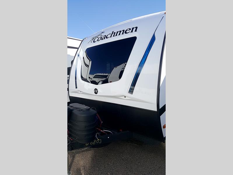 With any Freedom Express Ultra Lite travel trailer by Coachmen you will appreciate quality construction materials, such as vacuum bonded walls with Azdel composite, a 3/4 gel coated fiberglass cap with an automotive glass windshield, and a heated enclosed underbelly. Each model also features Tufflex PVC roofing, front rock guard, and E-Z Lube axles for smooth towing. Inside, you'll find kitchen backsplash, hidden hinge cabinetry, and wear-resistant vinyl flooring throughout. The power tongue jack included with the Ultra Lite Express Pack will make set-up a breeze, and each model includes back-up camera prep and they are Freedom solar ready if you plan to go off-grid. Enjoy lightweight camping with a Freedom Express Ultra Lite travel trailer today!