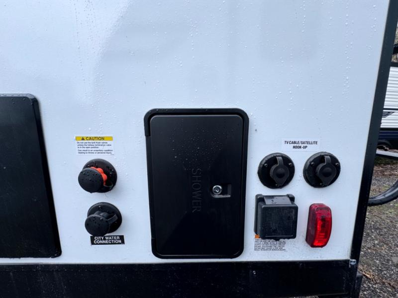 If you're looking for a family-friendly travel trailer, this is the one! The double-size bunks will be perfect for little ones, while you take the front private bedroom with a queen bed. There is also vaulted underbed storage so everything has a place. Within the full bath you'll find one of the dual entry doors for convenience, and the other entry door leads into the combined kitchen and living room. Your crew can dine at the booth dinette or relax on the sofa across from the entertainment center. There is also a hidden pantry behind the TV swivel and plenty of other storage spaces found throughout. The chef of your group will be happy to find a full interior kitchen with a flip-up countertop for more space plus an exterior pull-out camp kitchen with a refrigerator.