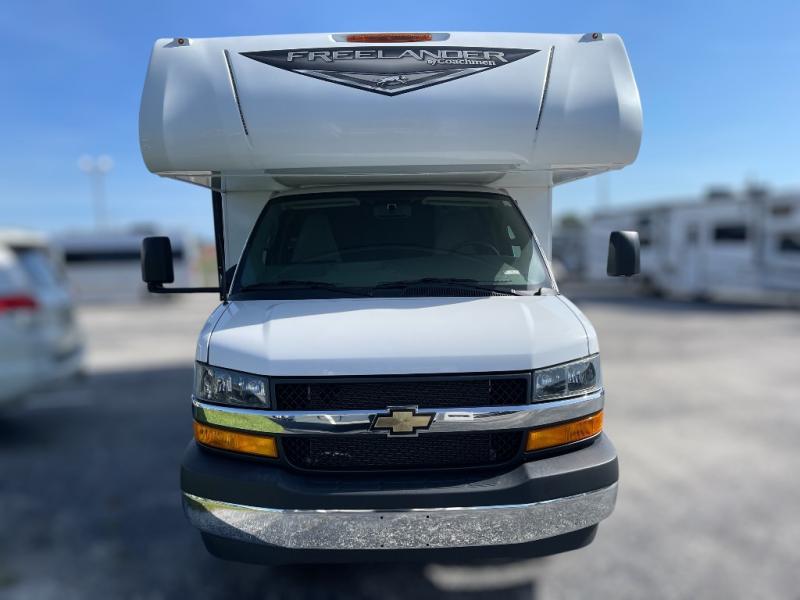 The Freelander Class C gas motorhome by Coachmen is a wonderful choice for anyone looking to get out on the road. A wide variety of floorplans and features offers something for everyone. The Azdel composite sidewalls and seamless one-piece roof membrane provide a solid structure to enjoy all your trips. Conveniences like storage above entrance door with an HDMI and charge station and reclining cockpit seats are standard, along with a rear color backup camera, a premium showerhead and faucet, and one-piece thermofoil countertops. The mandatory Executive package includes an exterior shower to rinse off before entering inside and an on demand tankless water heater for hot water fast. Come find your favorite one today!