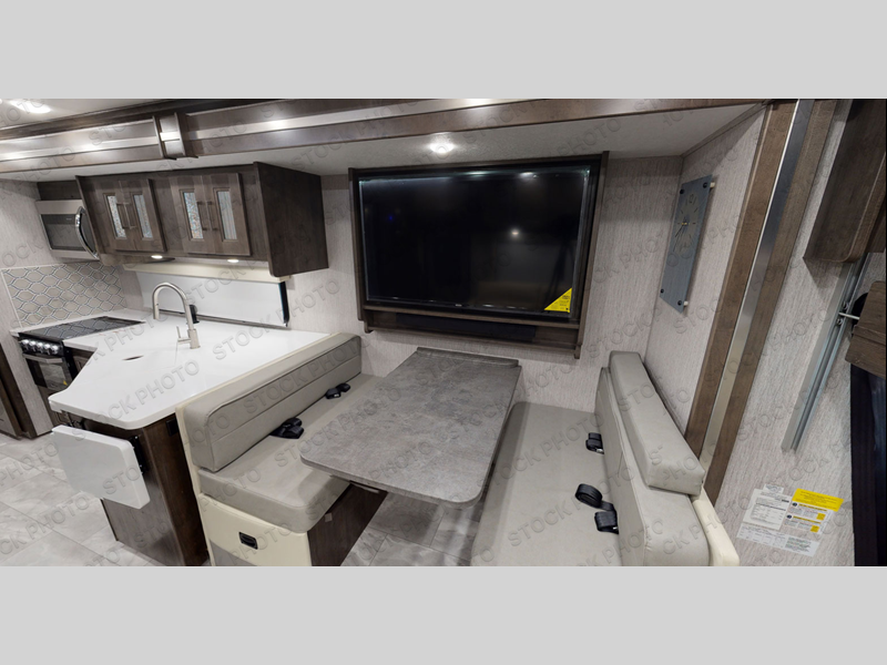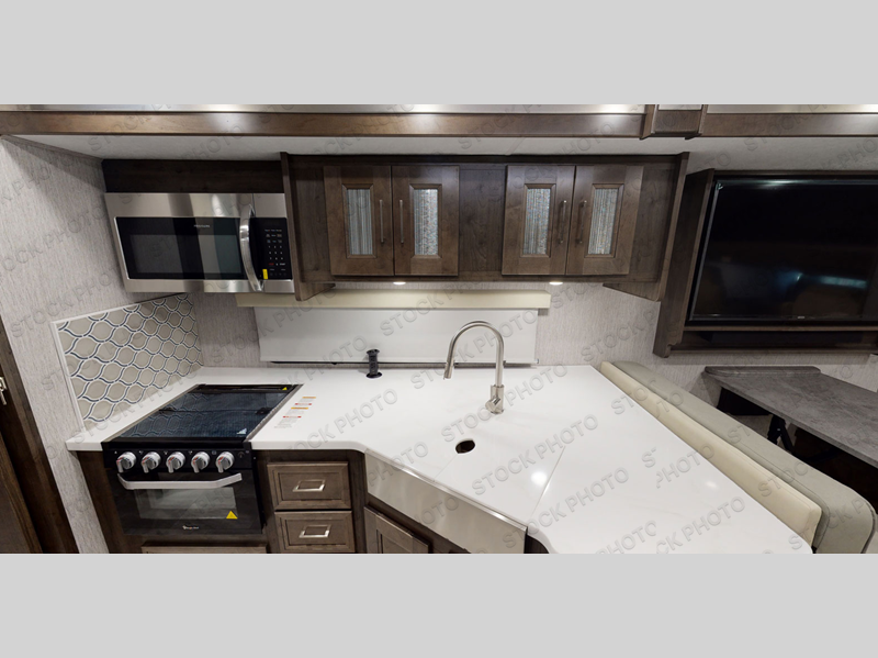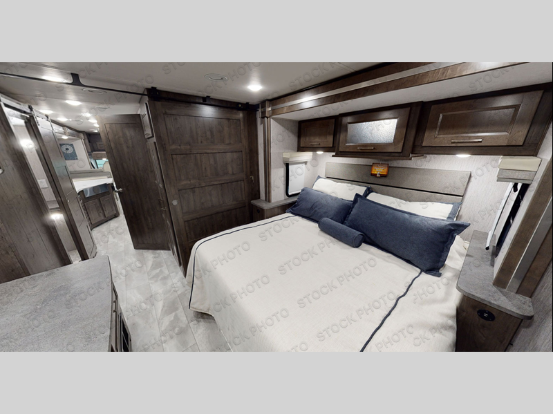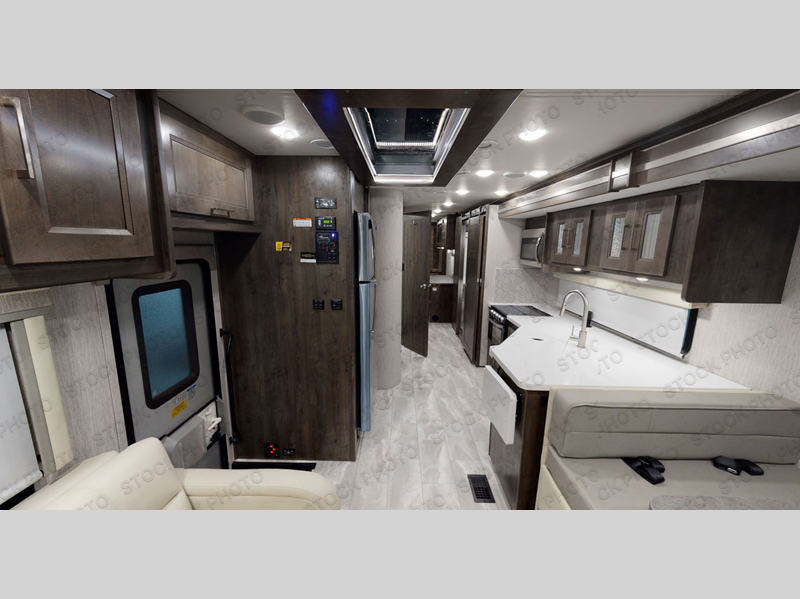 The Sportscoach SRS Class A diesel motorhome by Coachmen sits on a straight rail Freightliner chassis with a 340 HP ISB Cummings rear diesel engine that will deliver power to your excursions. Each coach features chassis air suspension and air brakes, an 8,000 lb. towing hitch, and an outside entertainment center with a 40" TV to watch the big game outdoors. Some of the electrical, heating, and AC amenities you will appreciate are the 6.0 kW diesel generator, the 100 watt solar panel with a controller, and the two 15,000 BTU A/C units. The galley features convenient pop-up recept with USB ports, stylish kitchen backsplash, and a stainless steel farmhouse style sink that will make clean-up easier than ever. Comfort will come easy with the upgraded mattress in the bedroom, along with a residential style headboard and a king bed. Affordable, powerful, and comfortable; what's not to love about the Sportscoach SRS Class A diesel coach!