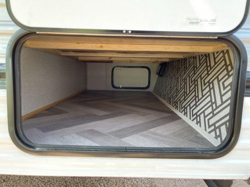 This travel trailer has everything you need for your next family or friends vacation. With room for five, pack up the kids or some friends for a fun weekend getaway. This unit includes a comfortable RV queen bed with a wardrobe for your clothes. After a day of exploring, kick back on the 60" sofa as you visit with family or enjoy game night at the booth dinette. You will love the rear corner kitchen that includes ample counter space to prepare yummy chocolate chip cookies. This travel trailer has multiple overhead storage compartments and a pantry for your dry goods. You'll feel right at home with a spacious full bath and a medicine cabinet for the first aid kit.