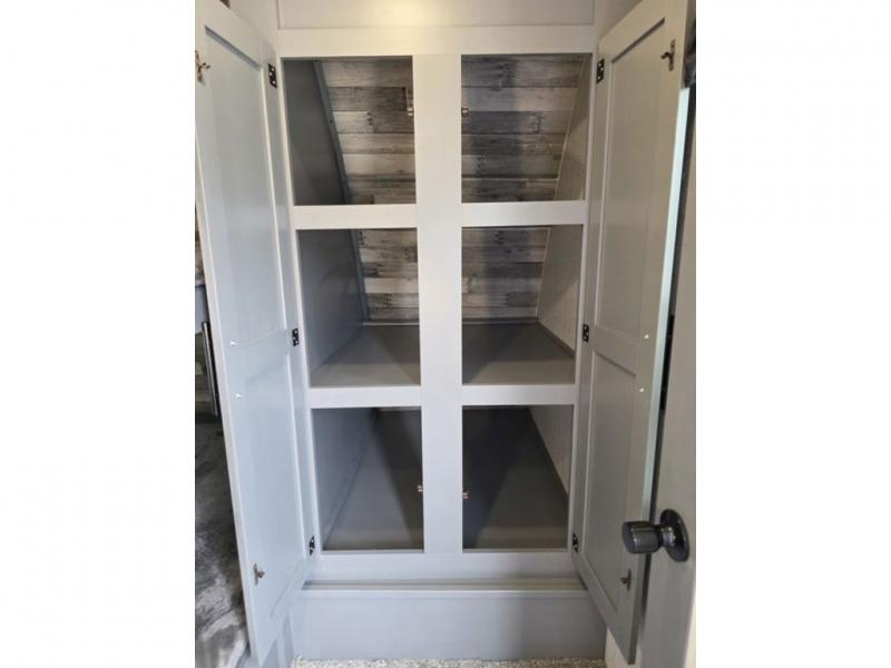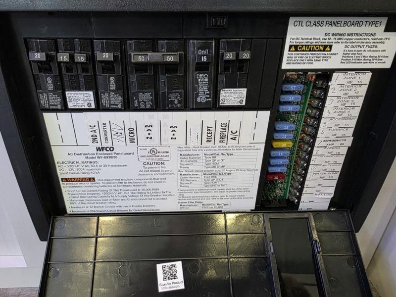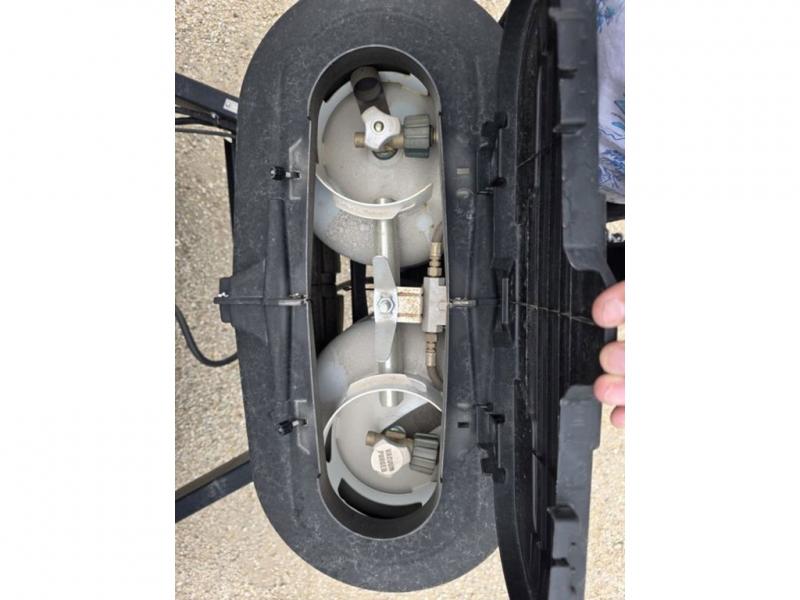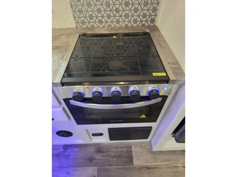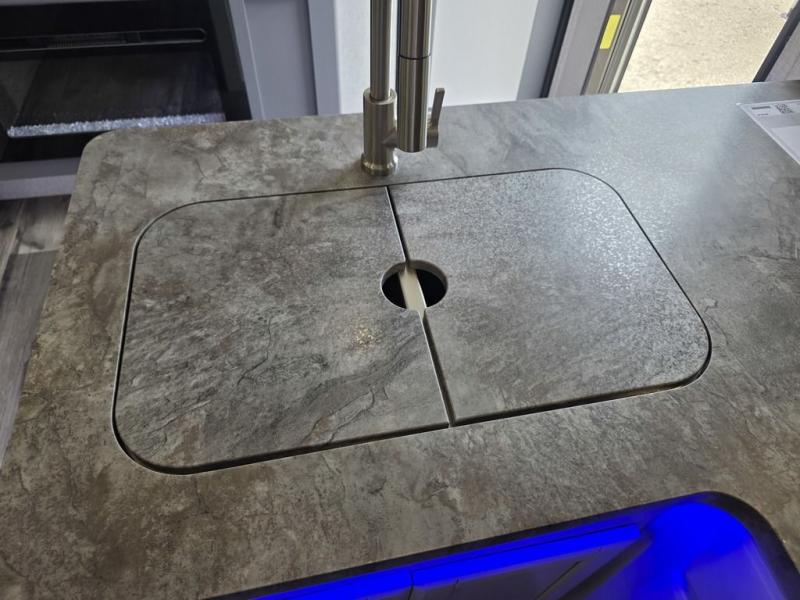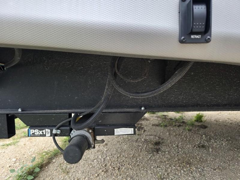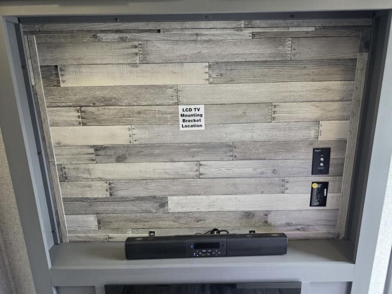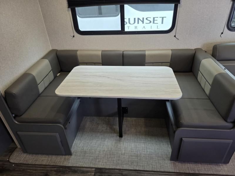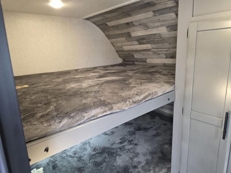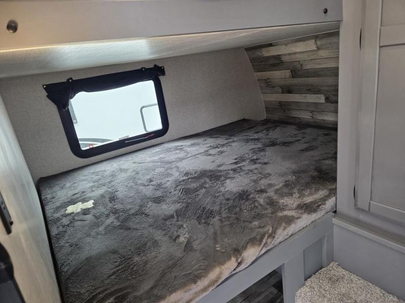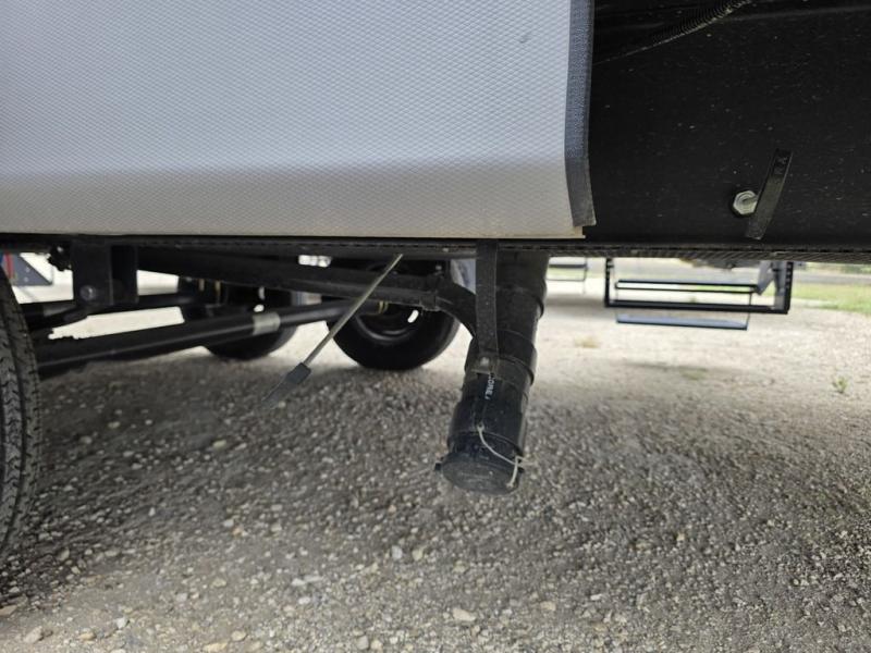 Load up and head out to your favorite state park in this dual entry travel trailer. The double slides will provide additional interior space, and the ten person sleeping capacity allows you to make this a whole-family trip! Once you arrive at your destination, prepare a quick lunch on the outside cooktop under the power awning. You'll also find indoor appliances to make meals when the weather isn't cooperating. Take a load off on the jackknife sofa or play a game of cards around the U-shaped dinette, and the fireplace will provide a more at-home feel. This model includes a rear master bedroom with its own exterior entrance, and up front you'll find queen-size bunks that will be perfect for the kids or your guests!