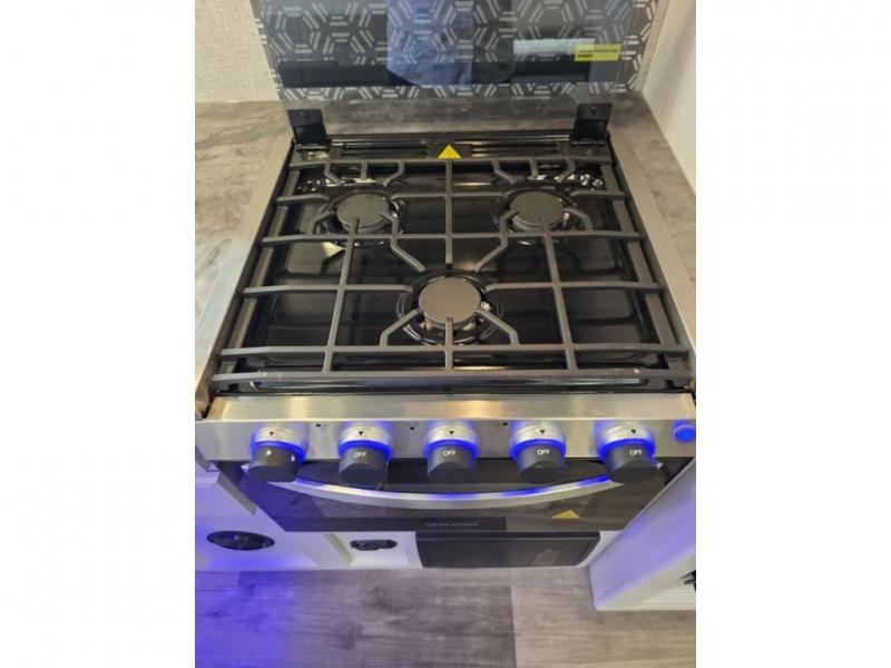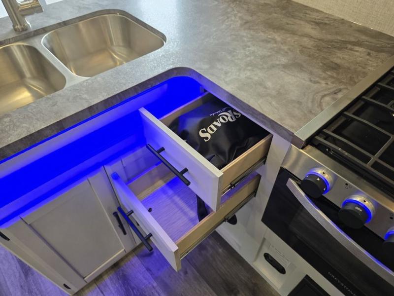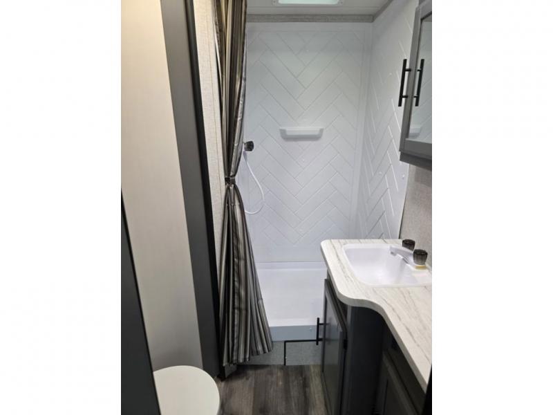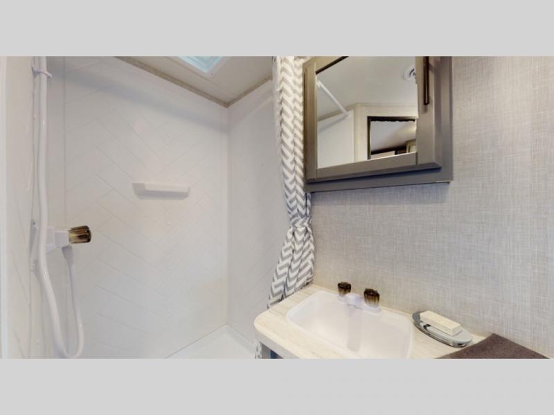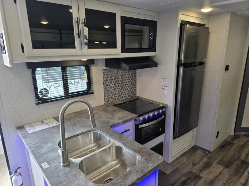 Each Volante fifth wheel or travel trailer by CrossRoads RV includes features and options that will enhance your camping experience. The fiberglass front cap is sure to be eye-catching, and you can plan to camp year around with the fully enclosed and forced air heated underbelly. There is also an outside shower, an electric awning with LED lights, outdoor speakers with LED accents, plus many more exterior conveniences. The interior of each Volante will have you feeling right at home with premium residential furniture, coordinating window treatments in the bedroom, nightstands with outlets in the bedroom, plus USB ports to keep your electronics charged. You will also appreciate a 13,500 BTU A/C, plus solar power prep and WiFi prep if you need to get some work done while you're away from home.