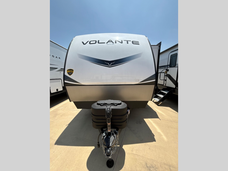 Each Volante fifth wheel or travel trailer by CrossRoads RV includes features and options that will enhance your camping experience. The fiberglass front cap is sure to be eye-catching, and you can plan to camp year around with the fully enclosed and forced air heated underbelly. There is also an outside shower, an electric awning with LED lights, outdoor speakers with LED accents, plus many more exterior conveniences. The interior of each Volante will have you feeling right at home with premium residential furniture, coordinating window treatments in the bedroom, nightstands with outlets in the bedroom, plus USB ports to keep your electronics charged. You will also appreciate a 13,500 BTU A/C, plus solar power prep and WiFi prep if you need to get some work done while you're away from home.