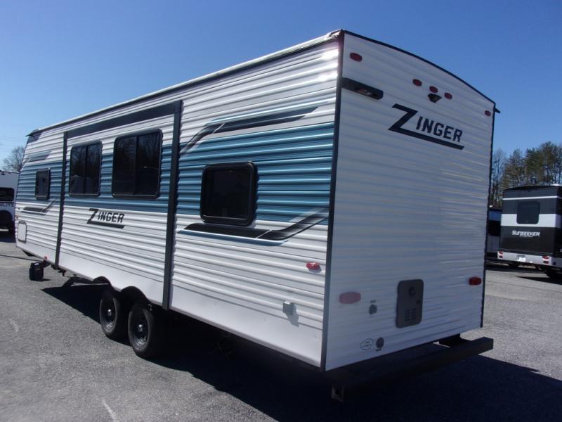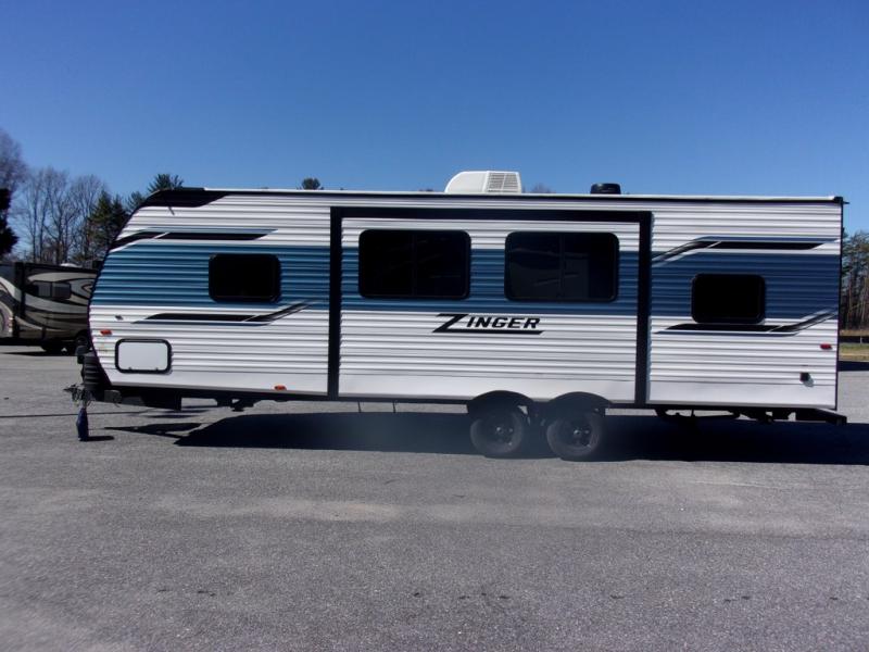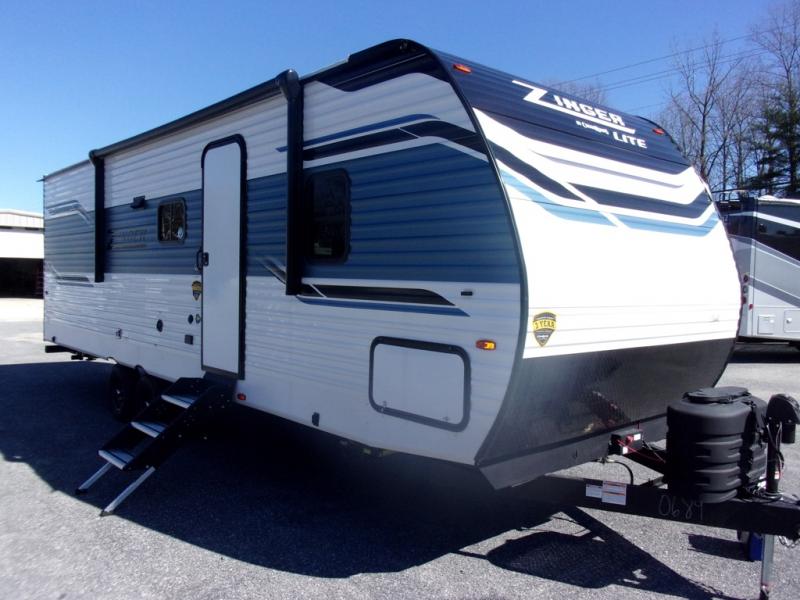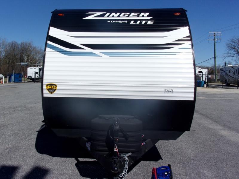 Join the CrossRoads family with a Zinger Lite travel trailer! You'll enjoy an abundance of standard features you would usually find with higher priced travel trailers. Each model features an aerodynamic front end for a more sleek look and better wind resistance when towing. You will appreciate the molded rain gutters with 3" drip spouts, plus Secure Stance entry steps and Keyed-A-Like doors. Having an AM/FM stereo with a Bluetooth soundbar will allow you to listen to your favorite tunes as you camp, and there are outdoor speakers with LED accents if you plan to take the party outdoors. The Zinger Lite also features a 81" interior ceiling height, generous storage space, plus popular options that can be added to further customize your RV. Choose yours today!