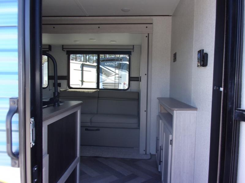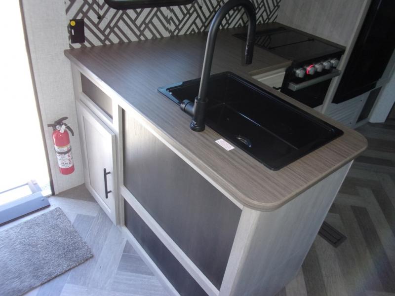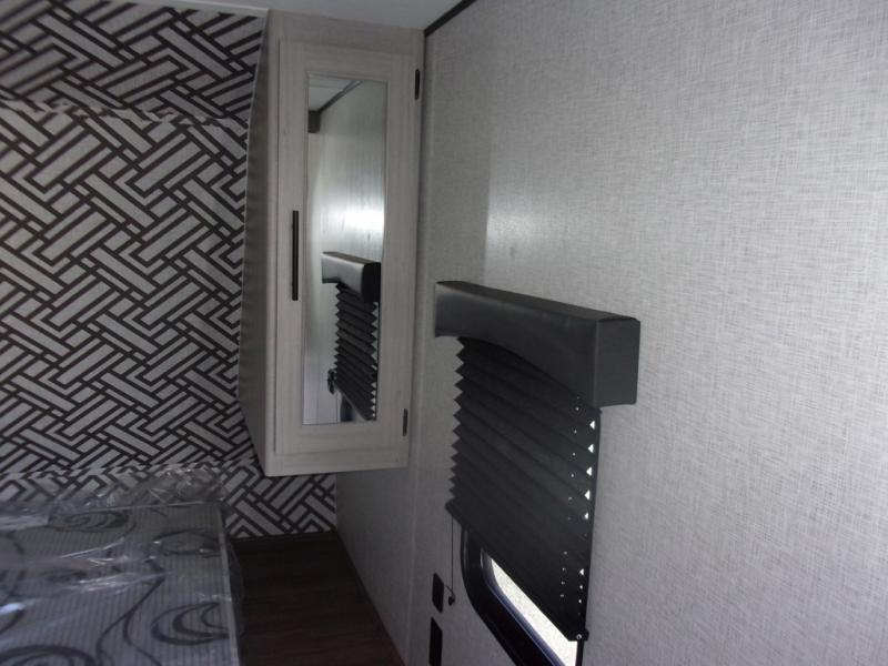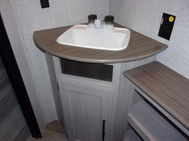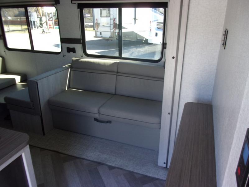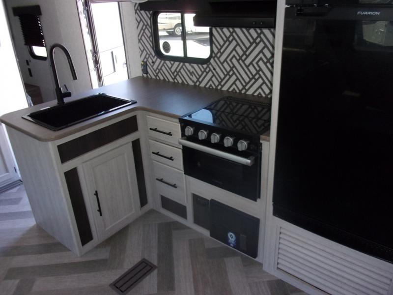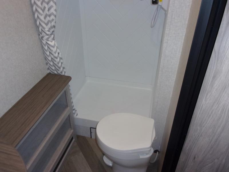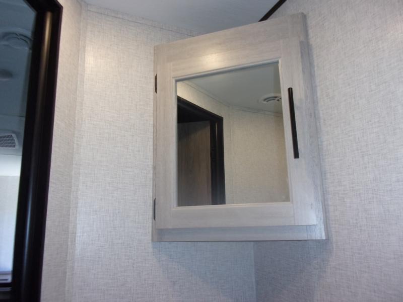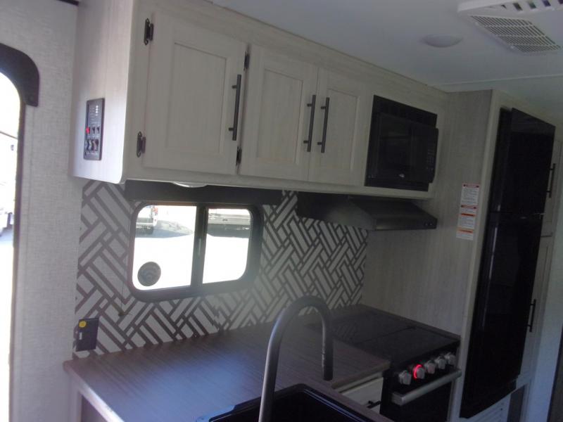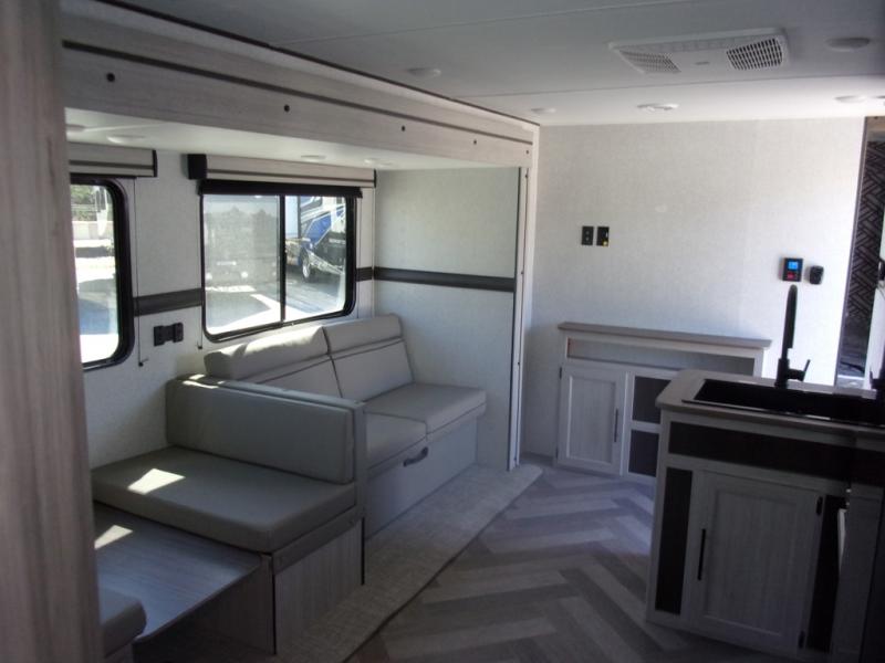 If you've been searching for a travel trailer that can sleep more campers and give you more interior space, this is the one! There are double-size bunks with a ladder for the little ones, an RV queen bed in the front bedroom, plus a jackknife sofa and booth dinette that will double as seating and sleeping space. You will be able to make home cooked meals for your crew since there is a three burner range with a glass top and LED lit knobs, and the 10 cu. ft. 12V refrigerator can keep your food fresh. This model also includes a full bath with a 30" x 36" shower, a foot flush toilet, and a medicine cabinet to keep items organized.