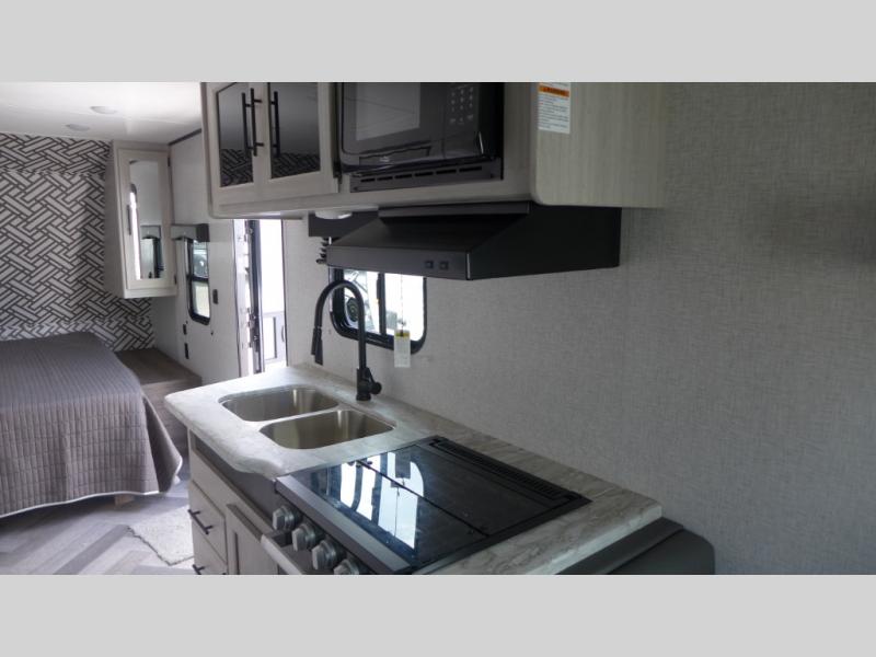 Join the CrossRoads family with a Zinger Lite travel trailer! You'll enjoy an abundance of standard features you would usually find with higher priced travel trailers. Each model features an aerodynamic front end for a more sleek look and better wind resistance when towing. You will appreciate the molded rain gutters with 3" drip spouts, plus Secure Stance entry steps and Keyed-A-Like doors. Having an AM/FM stereo with a Bluetooth soundbar will allow you to listen to your favorite tunes as you camp, and there are outdoor speakers with LED accents if you plan to take the party outdoors. The Zinger Lite also features a 81" interior ceiling height, generous storage space, plus popular options that can be added to further customize your RV. Choose yours today!