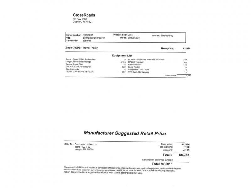 2024 CrossRoads Zinger travel trailer ZR390DB - 50AMP, 2 A/C'S, 2 BED, 2 BATH! GIVE US A CALL NOW 843-215-1800