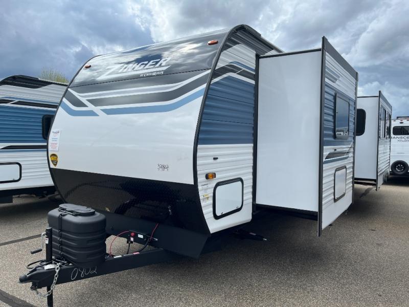 Lead your family to a great vacation getaway in any one of these CrossRoads RV Zinger destination trailers! They come with a fully enclosed underbelly with forced heat (varies by model) so that you can head to your favorite spot no matter what mother nature throws your way. The outside hot/cold shower will help keep mud from being tracked inside, and the Keyed-A-Like lock system will give you peace of mind at night or while you're away from the trailer. With an aerodynamic front end, you will get better gas mileage, and crank up the tunes with the outside speakers with LED accents. Start making memories in one of these models today!