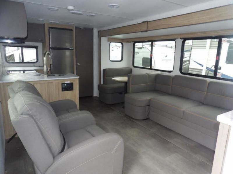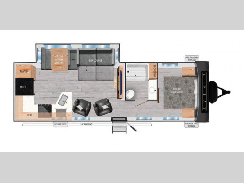 With any Avenir travel trailer by Cruiser RV, you will enjoy affordable luxury at every turn! The smooth corrugated metal exterior and industry leading 3X's full-height cross-members provide a durable foundation, and the Cruiser climate defense heated/enclosed underbelly helps extend your camping season. There are blackout room darkening roller shades in the living room, max storage in the deluxe curated kitchen, and thoughtfully located USB ports and 110V charging outlets to keep your electronics charged. A central control panel lets you easily access your units functions, and the Wi-Fi prep will give you the option to stay connected while you camp. Each model also features a tinted exterior glass door, an outside refrigerator, backup camera and TPMS prep, residential seamless countertops, and many more amenities to make camping trips enjoyable!