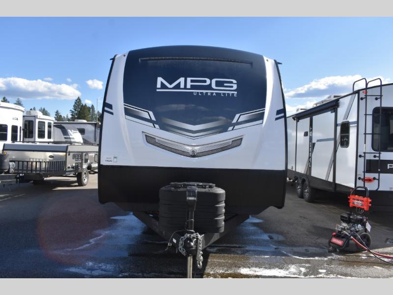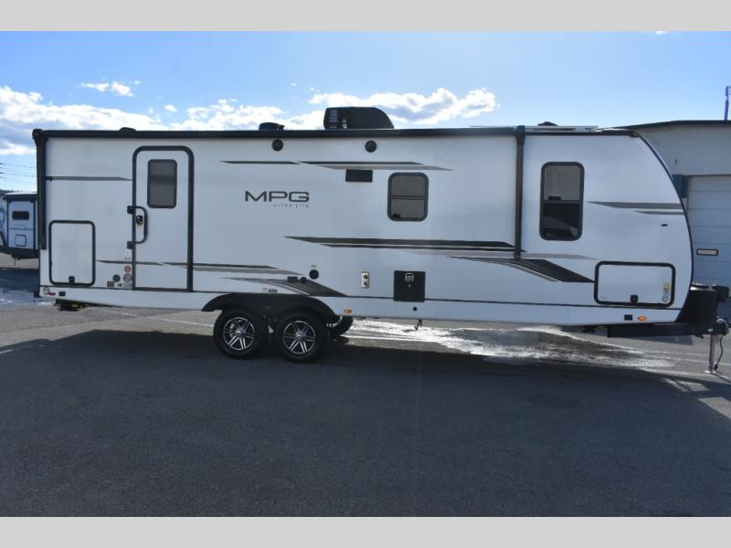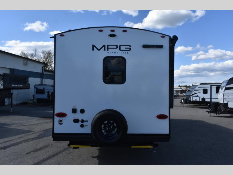 With any MPG travel trailer or toy hauler by Cruiser you will find a 6' 11" barrel roof, Azdel composite laminated walls, and a high gloss fiberglass front cap with LED lighting for a sleek look. There are seamless kitchen countertops and plywood flooring that will be easy to clean, plus residential hardwood cabinets with hidden hinges for a more at-home feel. The slam latch baggage doors with magnetic latches will make loading up easier than ever, plus the pass-through storage includes LED lights you are sure to appreciate. Each model also includes multiple charging stations with 12v and USB ports, a four speaker soundbar system to listen to your playlists, and a dual ducted A/C to keep you cool during those hot summer months!
