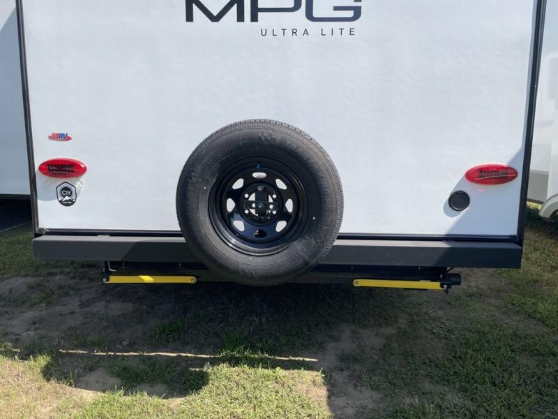 With any MPG travel trailer or toy hauler by Cruiser you will find a 6' 11" barrel roof, Azdel composite laminated walls, and a high gloss fiberglass front cap with LED lighting for a sleek look. There are seamless kitchen countertops and plywood flooring that will be easy to clean, plus residential hardwood cabinets with hidden hinges for a more at-home feel. The slam latch baggage doors with magnetic latches will make loading up easier than ever, plus the pass-through storage includes LED lights you are sure to appreciate. Each model also includes multiple charging stations with 12v and USB ports, a four speaker soundbar system to listen to your playlists, and a dual ducted A/C to keep you cool during those hot summer months!