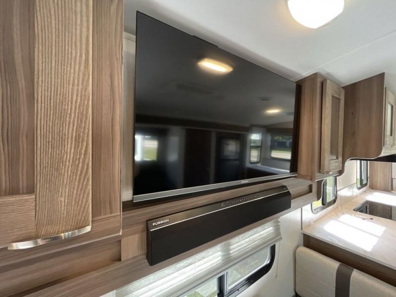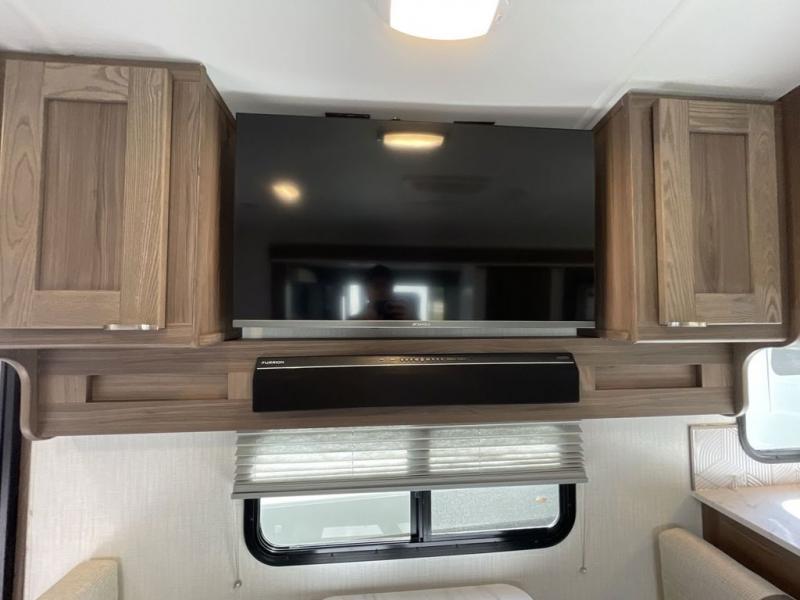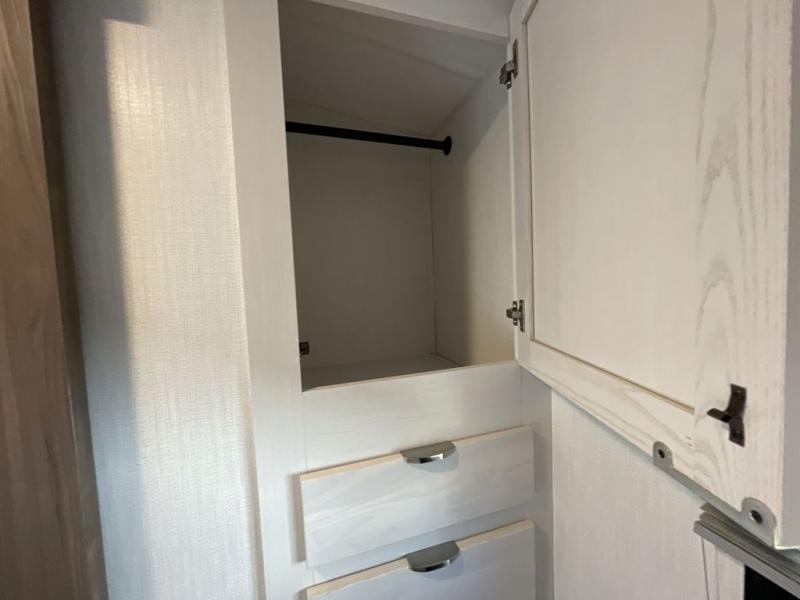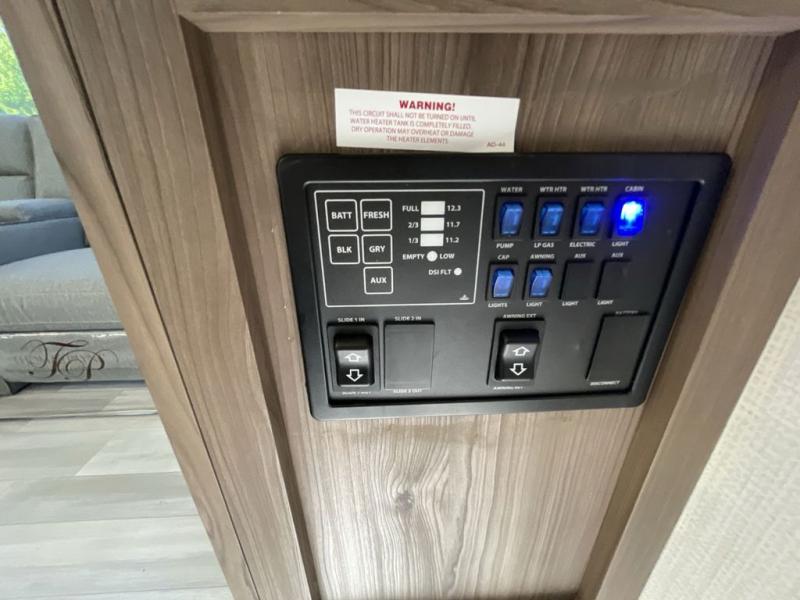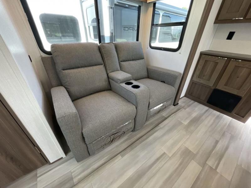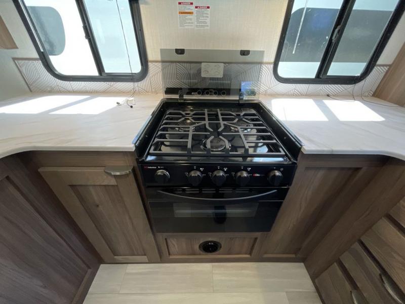Step into this rear kitchen travel trailer for fun in the great outdoors. You will love the amount of counter space you have, plus there is a booth dinette for dining and hanging out. The large slide out opposite provides more floor space, a sofa, a walk-in pantry and refrigerator for your perishables. The front private bedroom will feel just like home with its dual wardrobes, a dresser/wardrobe, plus a sliding king bed for more space to get dressed each morning. And don't forget to relax outside under the 20' awning with LED light, and utilize the outdoor refrigerator and griddle when feeding a crew.