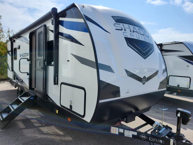 Each one of these Cruiser Shadow Cruiser travel trailers come with convenient features for you to make memories that will last a lifetime! The five sided aluminum framing holds together the Azdel composite laminated sidewalls which will keep your unit from rotting away, plus the surround seal slide system has a rain gutter to aid in keeping water out. Their strong foundation is built with a powder coated structural I-beam frames and three times the amount of required full-height cross members to provide a more solid floor foundation with more attachment points. Travel any time of year with the Extended Season package that includes an enclosed underbelly with forced heat. There is also a dual ducted 13,500 BTU A/C to keep you cool and a high BTU ducted furnace to keep you warm. There is over 40 cu. ft. of pass-through storage and slam latch baggage doors with magnetic latches to keep it in place while you access your items. Come find the perfect model for you today!