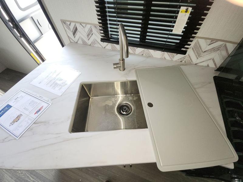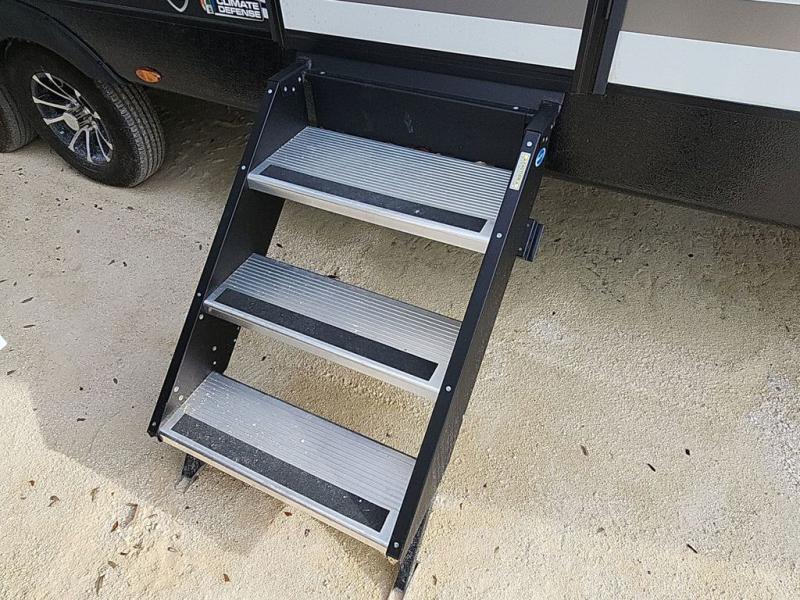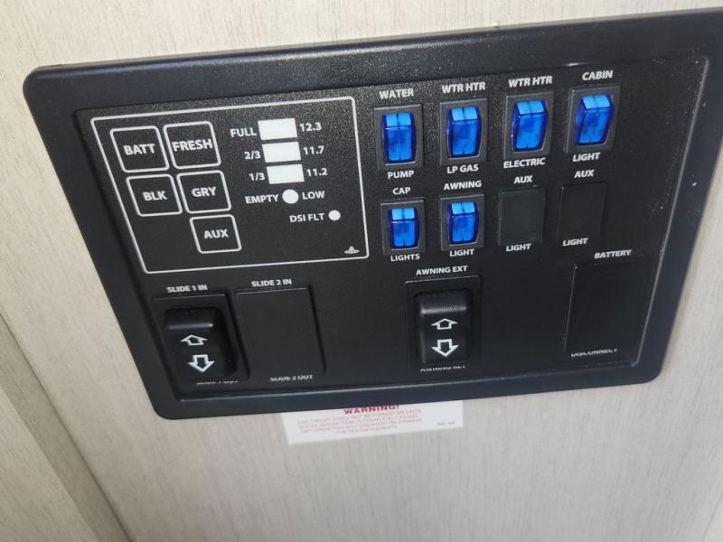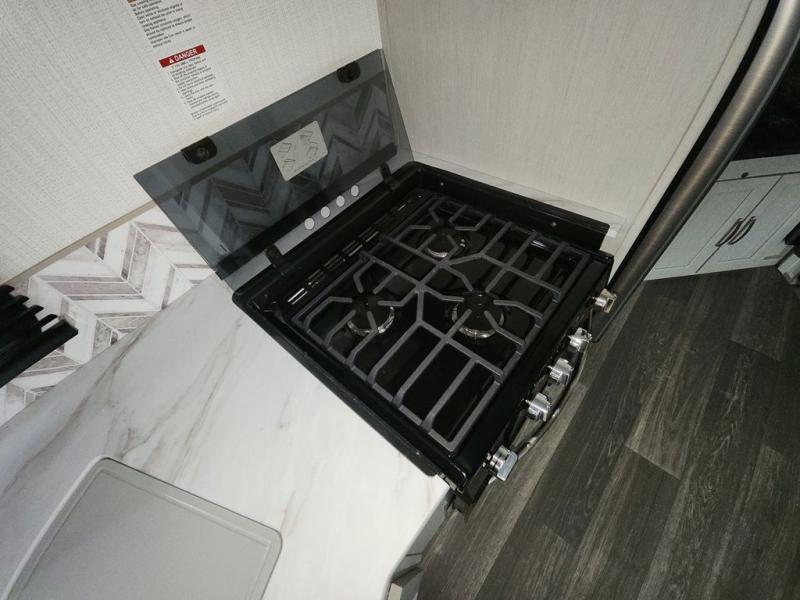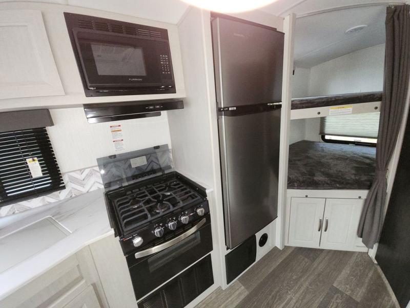 There is so much to love about this travel trailer, so come take a look! Since there are double-size bunks, a U-shaped dinette, and a queen bed in the front private bedroom, you can comfortably sleep eight happy campers! Once you've prepared dinner on the three burner range with an oven, everyone can dine around the dinette or sit outdoors under the 20' awning. There is also an outdoor kitchen with a griddle so you can cook outside on a nice day!