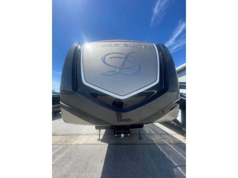 With any Mobile Suites fifth wheel by DRV Luxury Suites you will enjoy durable construction, beautiful interiors, and tons of storage spaces. The MORryde I.S suspension with MORryde pin box helps absorb road shock for a smooth towing experience, and the six point hydraulic leveling system will make set-up a breeze. Each model includes hassle-free conveniences, like the SeeLevel tank monitoring, the fully ducted A/C system with cold air return, solar prep, and much more! The interior is packed with luxury features, such as custom hardwood wardrobe doors, LED ceiling lights with dimmer switches, crown molding throughout, and custom hand laid glass backsplash. You may spend all your time relaxing indoors, but don't forget to check out the exterior. A power awning with LED lights, extra thick compartment doors with gas struts, and a custom painted exterior with clear coat are just a few features that are sure to be a deal breaker! You might even want to choose between the two optional full-body paint choices within the Elite Package, and many more available options to further customize your fifth wheel!