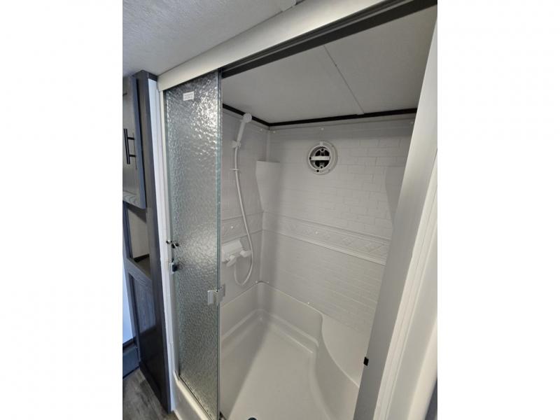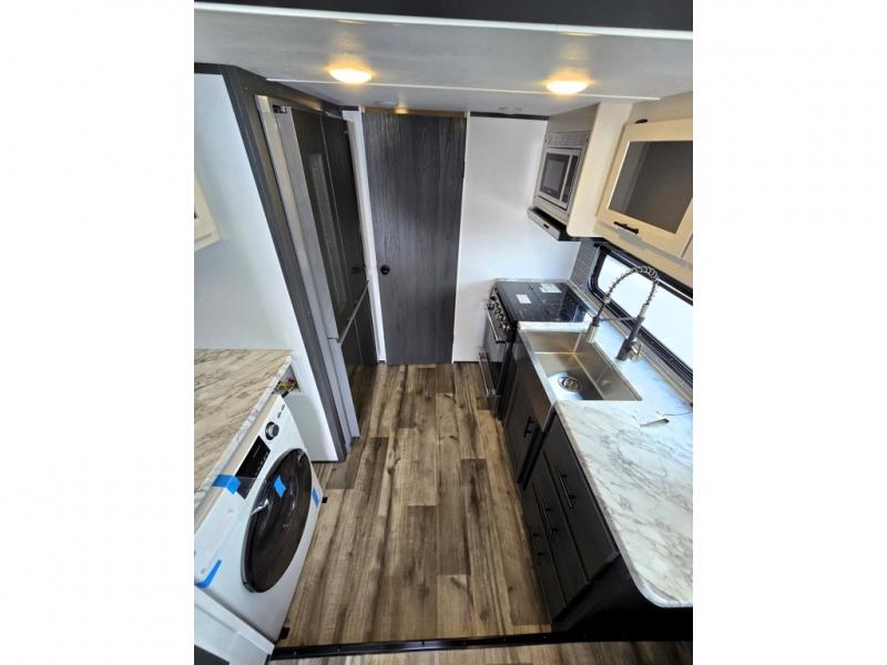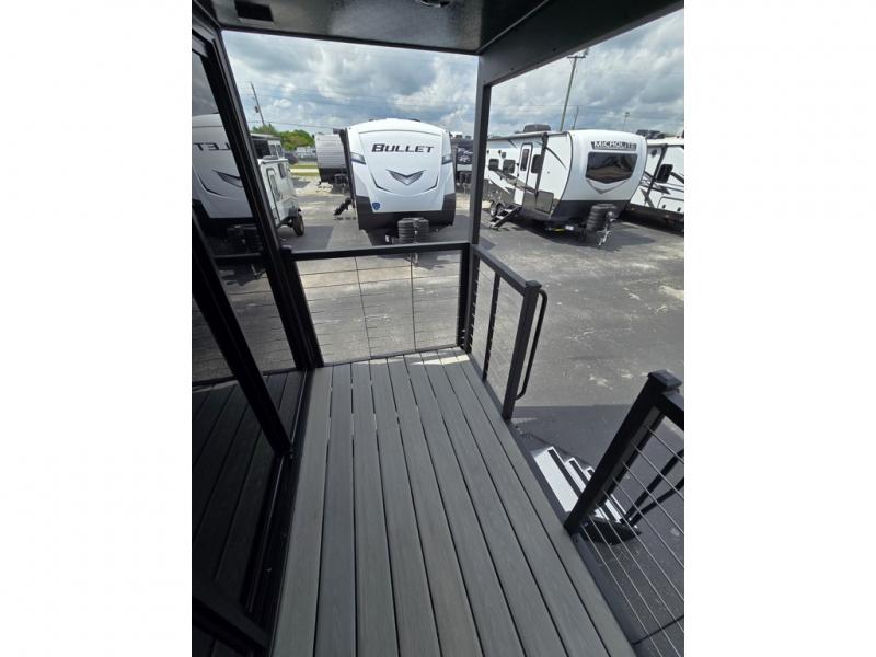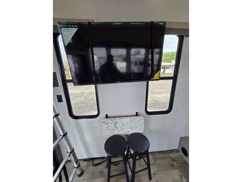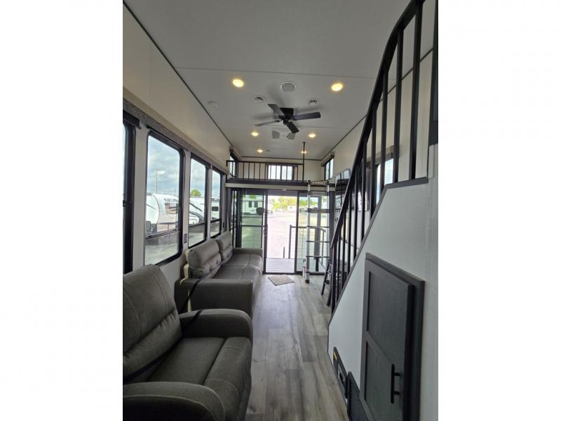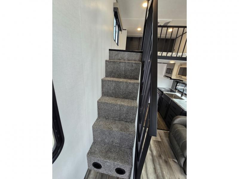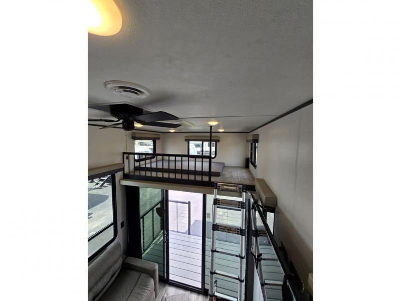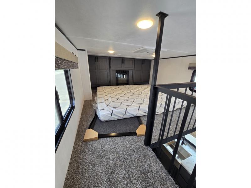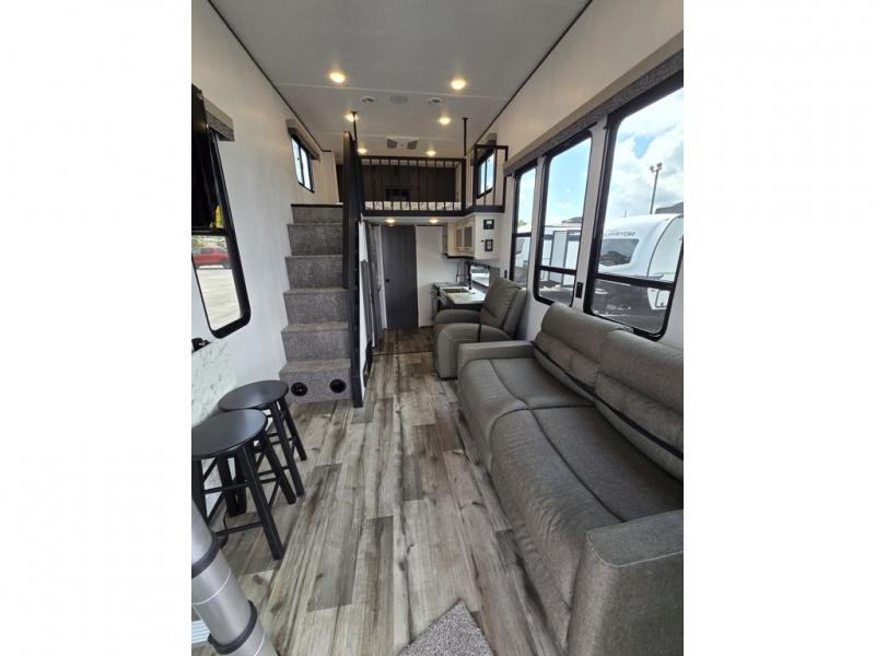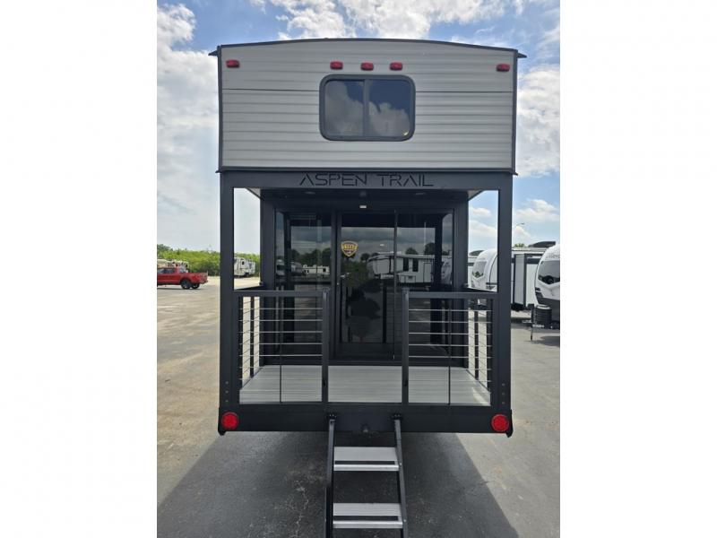 With any Aspen Trail Loft destination trailer, you can enjoy extended stays without the hassle. The fiberglass insulation throughout, 3/8" walk-on roof decking, and chambered chassis are just a few of the durable construction advantages. The high-efficiency 15k BTU A/C cooling system, second 13.5 BTU A/C, and 35,000k BTU furnace will keep you comfortable year around, and the tankless on-demand water heater is an added convenience you won't want to camp without. You'll enjoy spending time outdoors with the large awning and light strip, and the folding entry assist handle makes it easy to come and go. A central vacuum system will make it easier to clean up and an Aspen Trail command center provides a central place to control your unit's functions. The interior of the Aspen Trail Loft features the Home Series interior design package, seamless countertops, residential appliances, blackout roller shades throughout, and an 8 ft. ceiling height with a 7 ft. slide out height.
