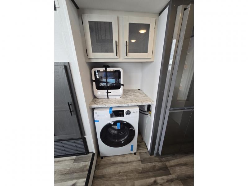 You won't believe how easy it will be to enjoy extended stays in this Aspen Trail Loft! The rear entry steps lead to the back patio where you can set up your chairs and enjoy evenings outdoors, and there is a loft area with a twin-size bed above the patio for guests. You'll have the main loft with a queen-size bed all to yourselves plus there is a fireplace here to keep you warm at night. The lower level of this unit includes a sofa, recliner, and table with two stools, plus an entertainment center with an HD LED TV to watch your favorite shows at night. A full kitchen with a residential sized 24" oven and three burner cooktop will let you cook meals each day, and the washer/dryer prep will give you the option to make laundry day easier. And don't overlook the front bath with a three-piece glass shower door enclosure, medicine cabinet, and bath linen closet for clean towels!
