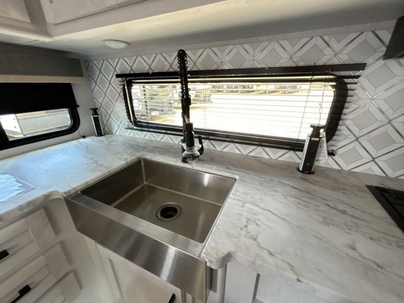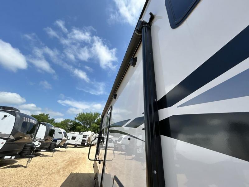 Each one of these Dutchmen RV Astoria Half-Ton fifth wheels feature a fiberglass exterior for added durability and an All Weather Thermal Package so you can camp all year long! There are also Secure Stance entry steps, slam latch baggage doors, an outside shower port, and many more exterior conveniences. You'll enjoy a 200W solar panel for off-grid capabilities, a back up camera for easy parking, and a power awning with LED lights for an inviting outdoor space. The interior is designed with high-gloss acrylic backsplash, night shades throughout the living area, and slick black appliances. The 60,000 BTU tankless water heater will provide endless hot showers, and the 15,000 BTU ducted A/C will keep you cool all summer long.