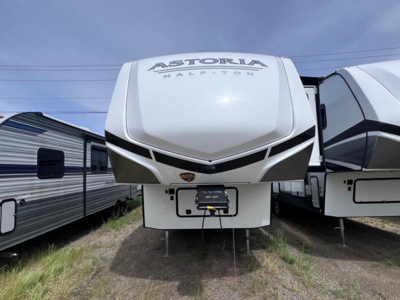 Each one of these Dutchmen RV Astoria Half-Ton fifth wheels feature a fiberglass exterior for added durability and an All Weather Thermal Package so you can camp all year long! There are also Secure Stance entry steps, slam latch baggage doors, an outside shower port, and many more exterior conveniences. You'll enjoy a 200W solar panel for off-grid capabilities, a back up camera for easy parking, and a power awning with LED lights for an inviting outdoor space. The interior is designed with high-gloss acrylic backsplash, night shades throughout the living area, and slick black appliances. The 60,000 BTU tankless water heater will provide endless hot showers, and the 15,000 BTU ducted A/C will keep you cool all summer long.
