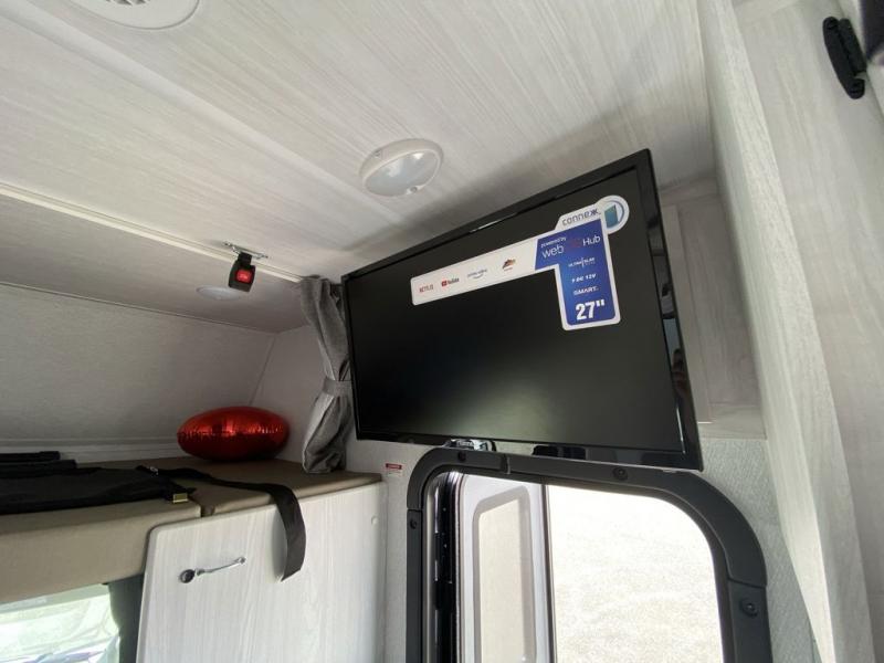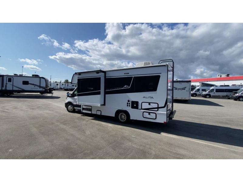 The Alita Class C gas motorhome is fueled by a 3.5L EcoBoost V6 engine which sits on the all-new Ford AWD 350 Transit chassis with 10-speed automatic Selectshift transmission. The Alita features Azdel composite sidewall and slidebox construction along with a one-piece automotive painted fiberglass front cap, Dicor Diflex II TPO roof membrane, and side port solar panel hook-up, plus more. On the inside, a cabover bunk for added sleeping or storage, a portable induction cooktop, a premium subway tile backsplash, and the Alita value package also features a luxury legless Girard awning with LED light strip, panoramic windows with integrated night shades for great views during the day and privacy when you want it at night. You will also appreciate the solar charge package option and so much more!