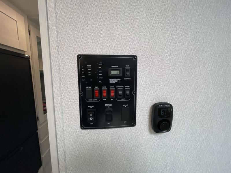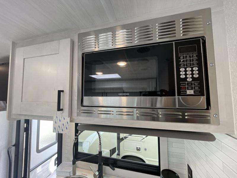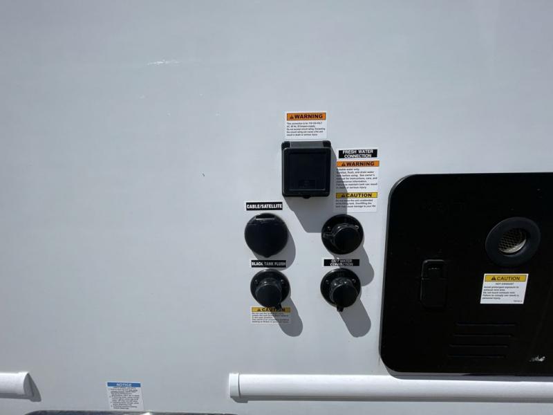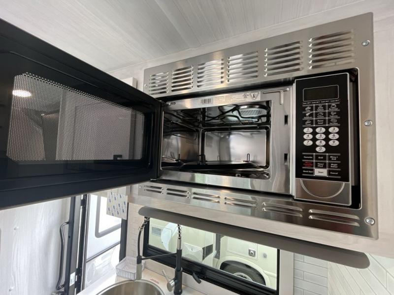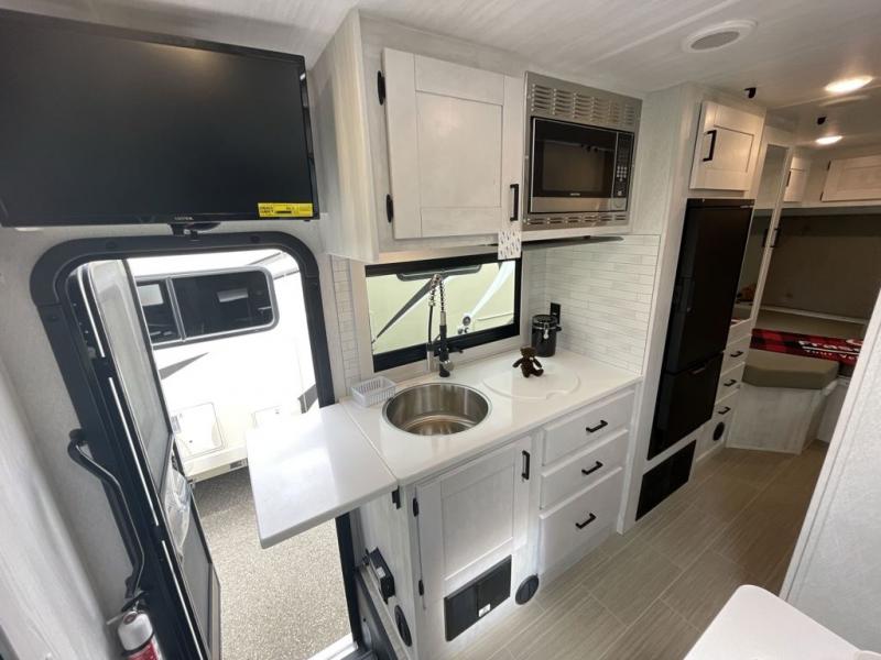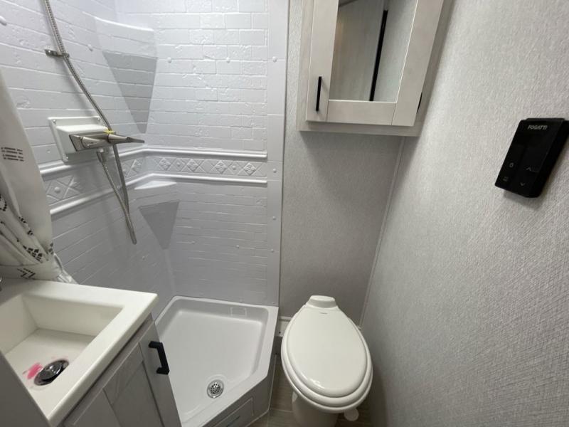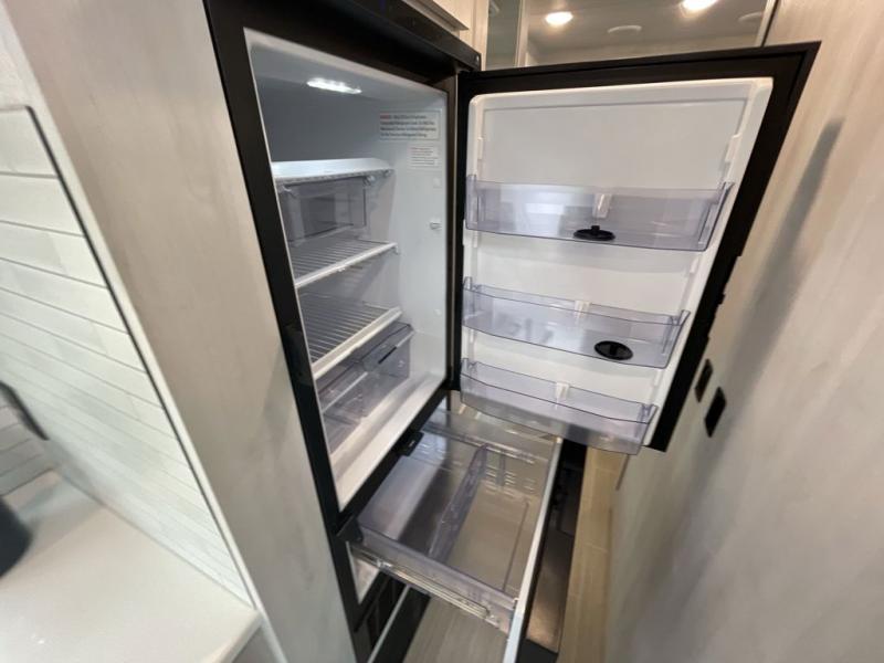 Whether you are traveling to your favorite campground or across the country, you are going to love this motorhome. You will have versatility in this coach to travel with a friend or your sweetheart with two twin beds that can easily convert to a king bed if you like. Each bed is 36" x 73" with a nightstand between and overhead storage along both sides and across the rear of the unit providing plenty of space for your things. There is also a wardrobe off the foot of the twin that is on the curbside. For relaxing and dining a slide out sofa with removeable table, and more overhead storage here. The kitchen is opposite the slide on the door side and features a round hidden sink with solid surface cover for added prep space, a 12-volt 6 cu. ft. refrigerator for your perishables, and a microwave oven and induction cooktop for easy meals as you travel. When you want to get cleaned up, a bath with an angled shower, toilet, and sink, plus medicine cabinet for your toothbrush and razor. The doors both open out so you can actually create a more open space when in the bathroom making it the width of the unit.