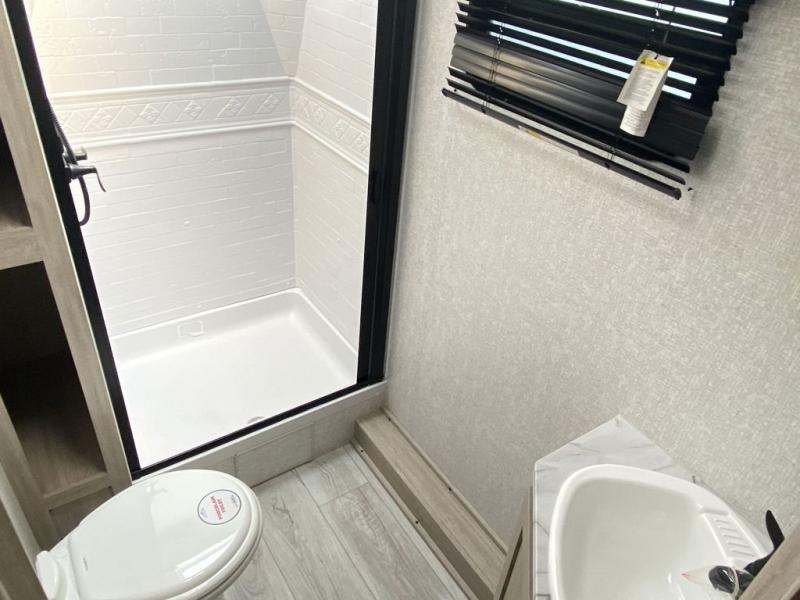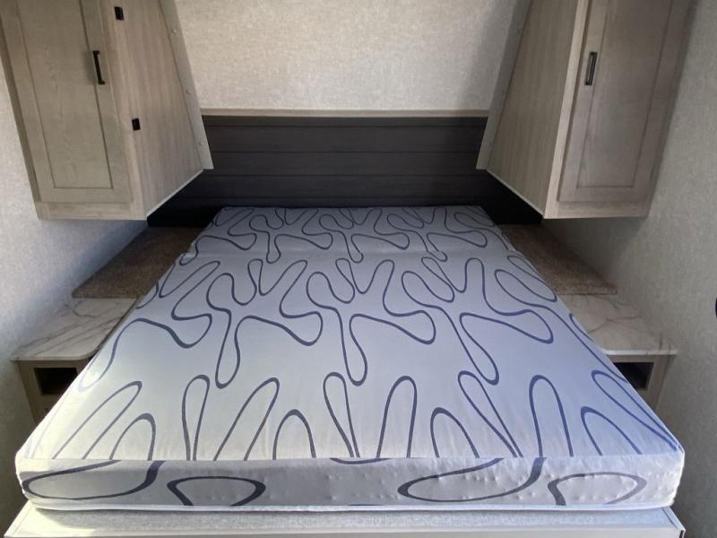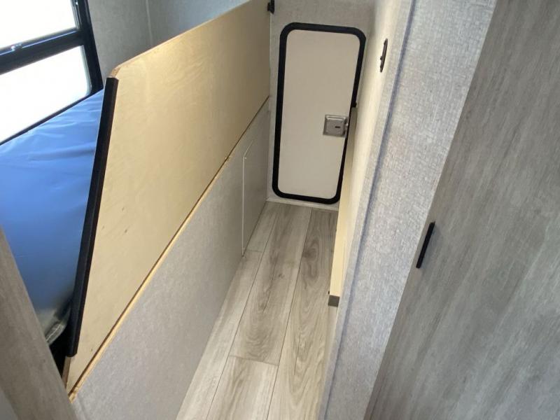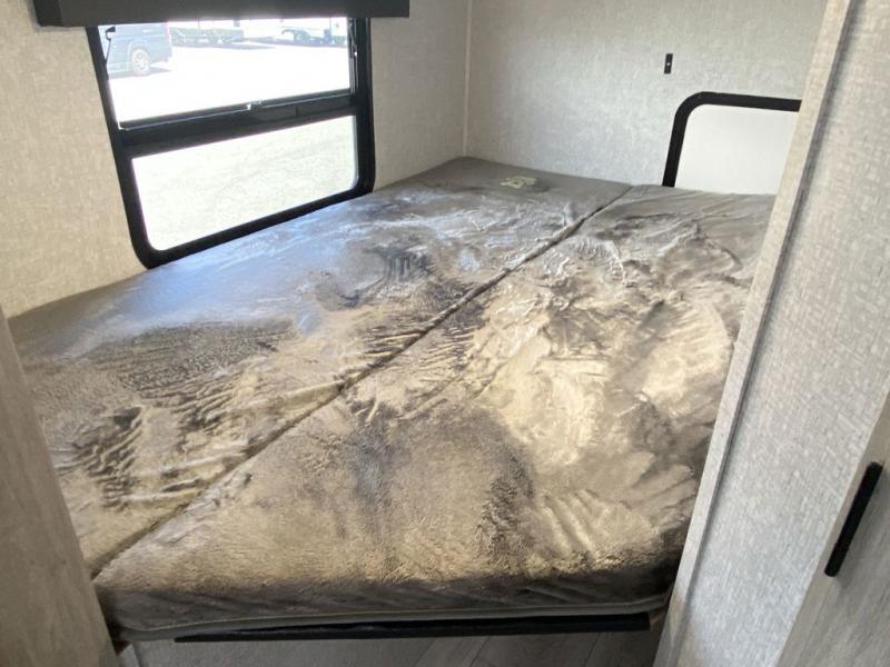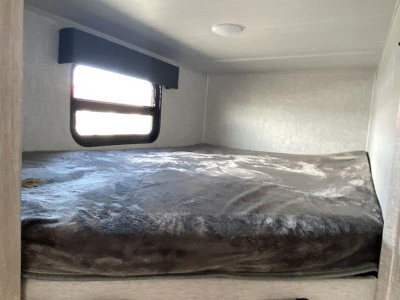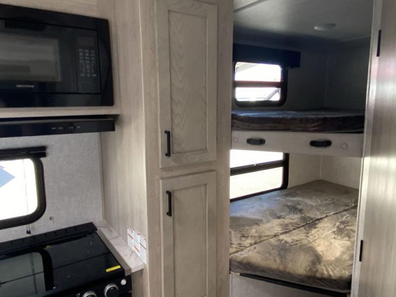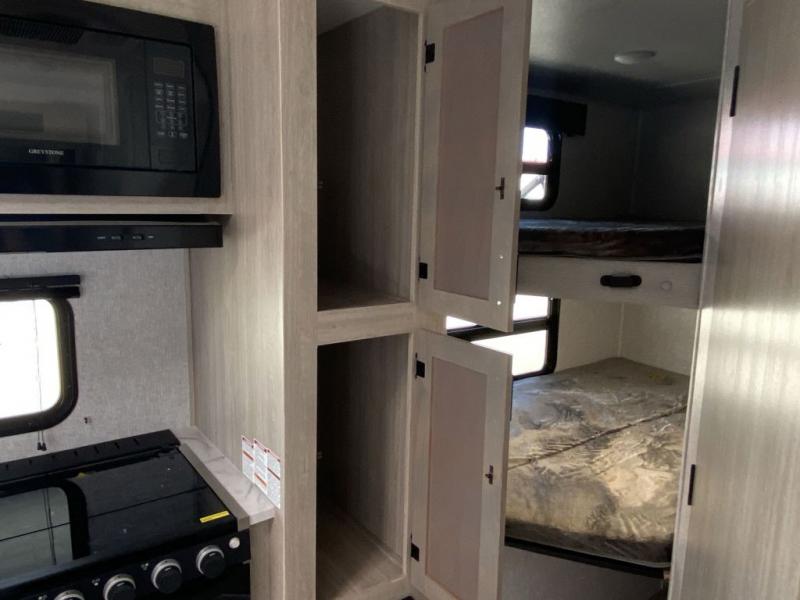 Double-size bunks are sure to be fun for everyone! With a queen Murphy bed that can be hidden away during the day, this travel trailer is versatile. A center kitchen with three-burner cooktop, refrigerator, and pantry will make cooking easy. The booth dinette is a great choice, or you can exchange it for the optional free-standing dinette. A rear bath has a linen closet for towel storage, and the shower skylight lets the light in. Outside you'll find a whole other set of features, like an outside kitchen, TV hookup, and a storage door that is large enough for bikes or kayaks. Perfect for the outdoor adventure you've been craving!