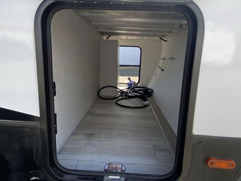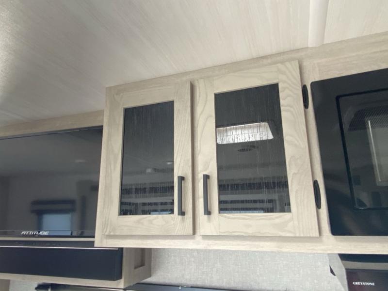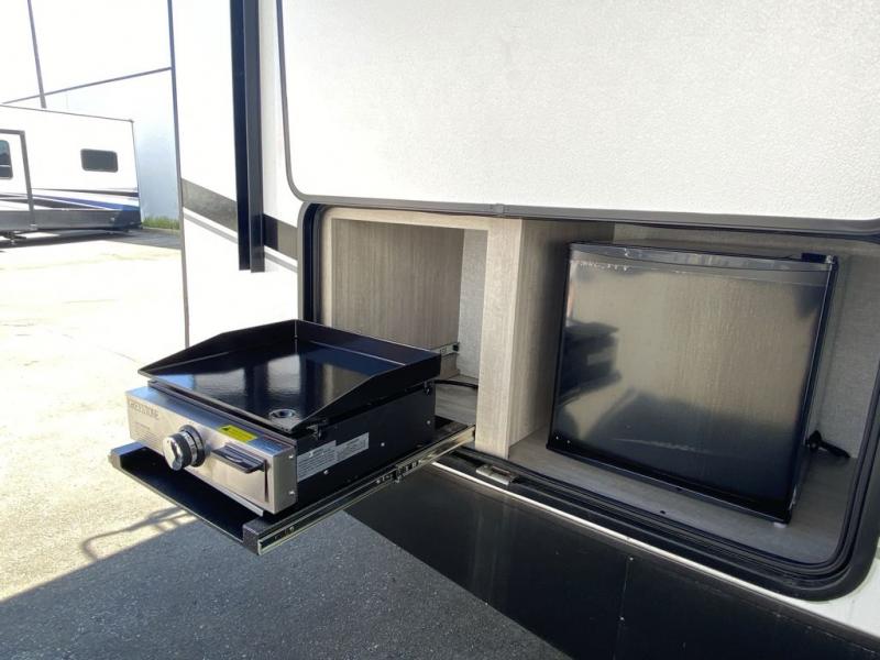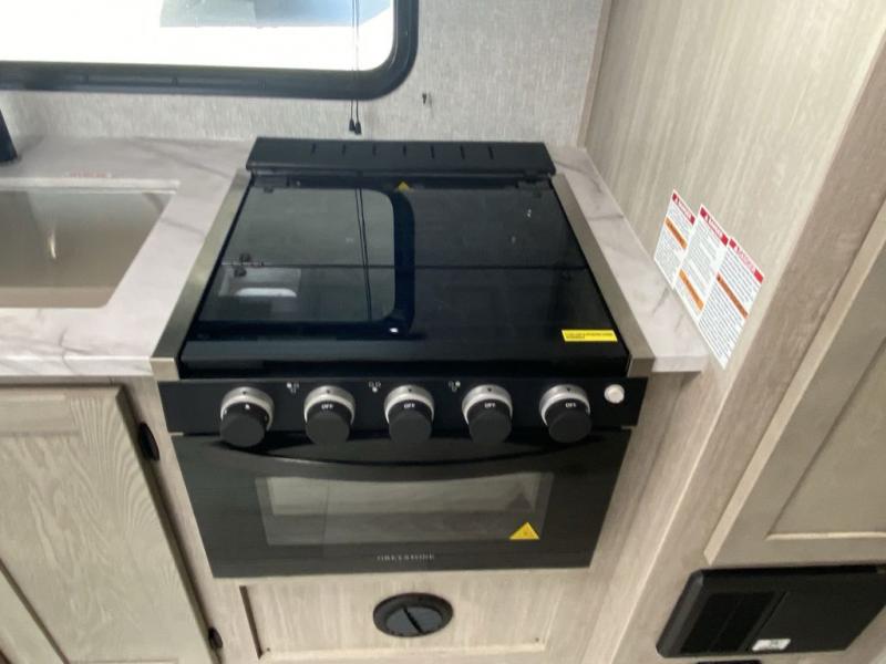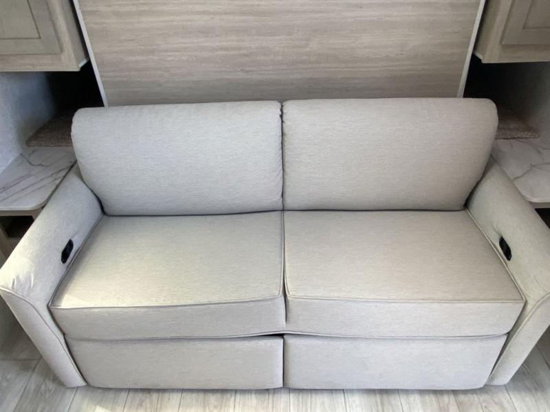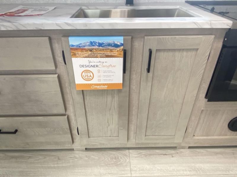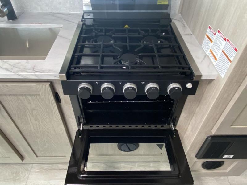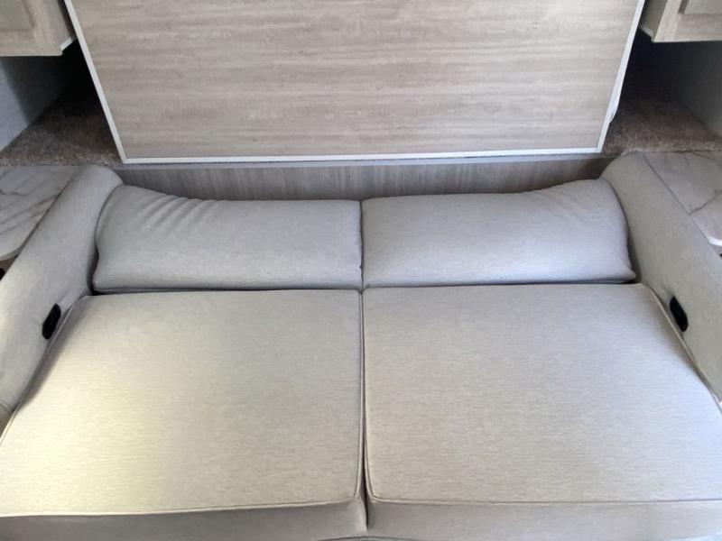 Double-size bunks are sure to be fun for everyone! With a queen Murphy bed that can be hidden away during the day, this travel trailer is versatile. A center kitchen with three-burner cooktop, refrigerator, and pantry will make cooking easy. The booth dinette is a great choice, or you can exchange it for the optional free-standing dinette. A rear bath has a linen closet for towel storage, and the shower skylight lets the light in. Outside you'll find a whole other set of features, like an outside kitchen, TV hookup, and a storage door that is large enough for bikes or kayaks. Perfect for the outdoor adventure you've been craving!