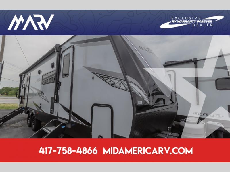 Each Alta travel trailer by EAST TO WEST is constructed with a 5" vacuum bonded roof, flush floor slide outs (where applicable), and diamond plate front rock guard for added protection. Outside, you'll find marine-grade exterior speakers, a universal docking station, and back-up camera prep that can be added to make maneuvering in and out of campgrounds easier than ever. There are USB charging stations for your tablet or phone and designer solid surface countertops you are sure to love. The furnace and 15,000 BTU ducted A/C with quick cool will keep you comfortable in any season, and the 81" interior ceiling height will provide ample space to move about without feeling confined. Start a new adventure in an Alta travel trailer today!