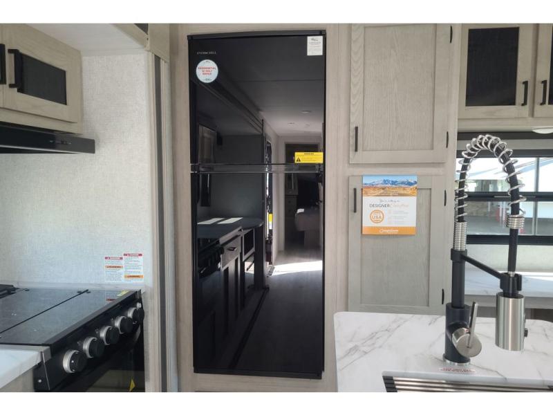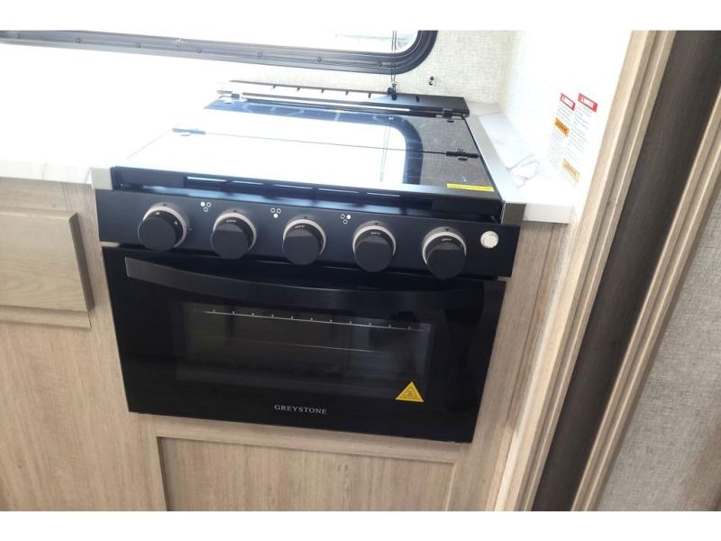How does a king bed, a kitchen island, and an outdoor kitchen sound? You'll get all that and more in this spacious travel trailer. The dual opposing slides opens up the whole trailer, and the desk in the back will allow you to work while you're away from home. A three burner cooktop and microwave oven comes standard indoors, along with plenty of counter space and a pantry for snacks. Head outdoors to find the outside kitchen under the 21' power awning with LED lights, and when you're ready for bed the king bed will be waiting for you!