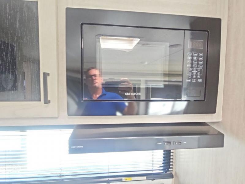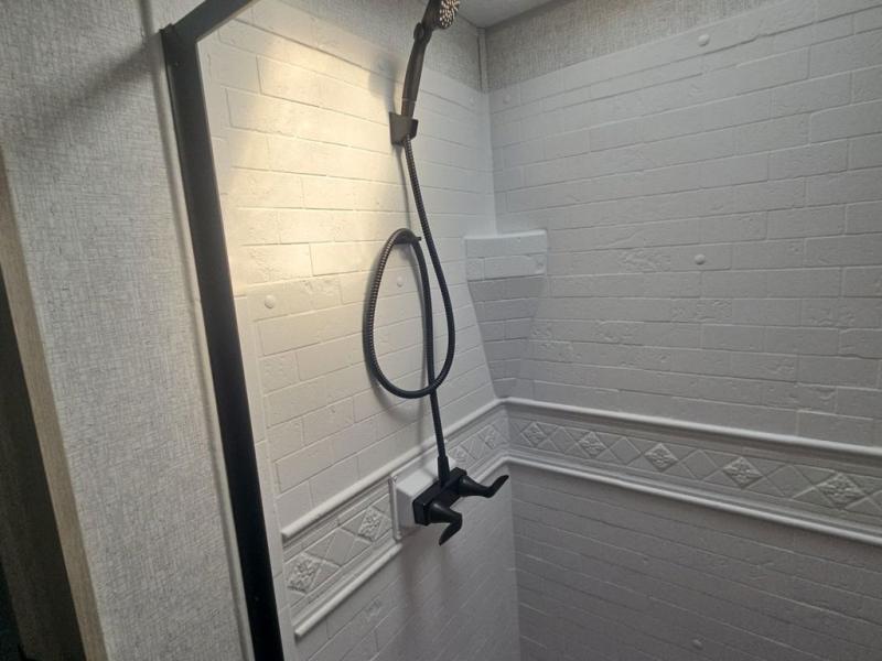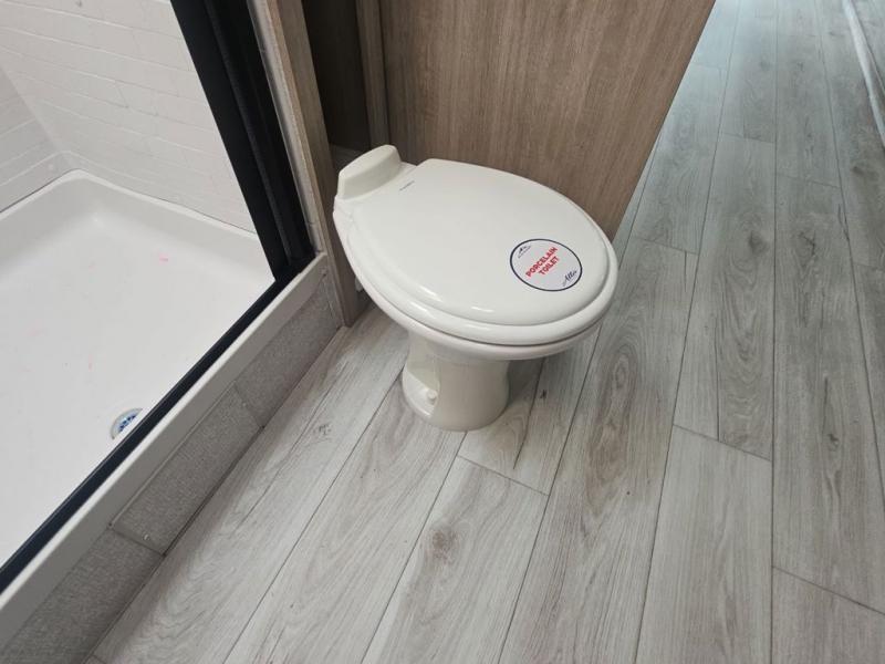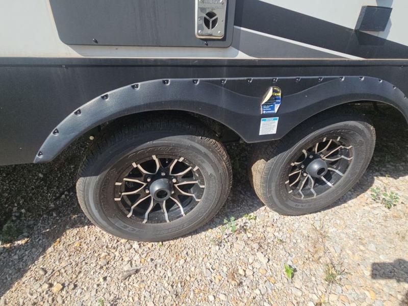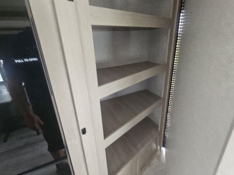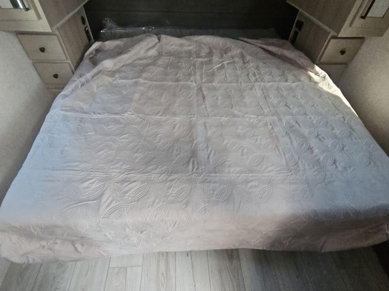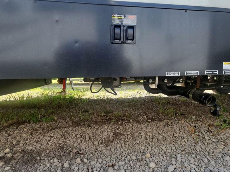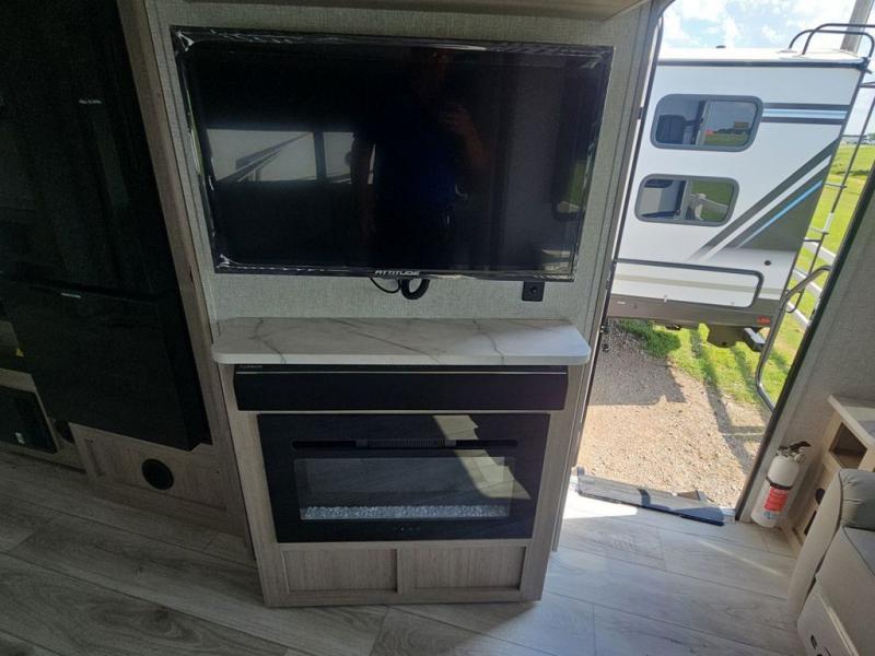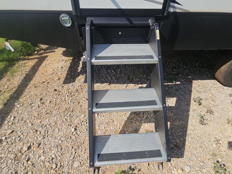 You'll feel right at home in this rear living travel trailer that includes theater seats and a front master bedroom with a king bed. The walk-through bath includes a medicine cabinet and a shower skylight to let natural light in, and the bedroom includes its own exterior entry door for convenience. When you're not relaxing outdoors under the 21' power awning with LED lights, you can play a game at the booth dinette or relax on the tri-fold sofa. This model also includes a pass-through storage for your larger camp gear and a universal docking station for easy access to your hookups.