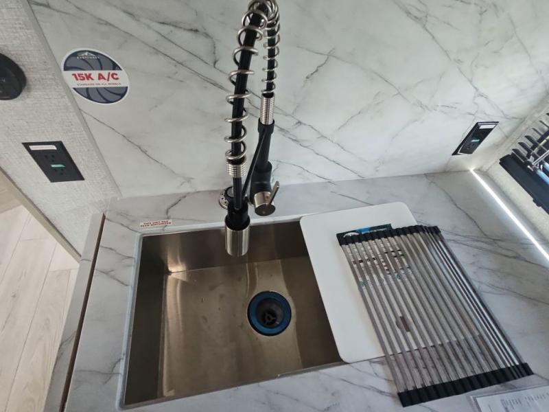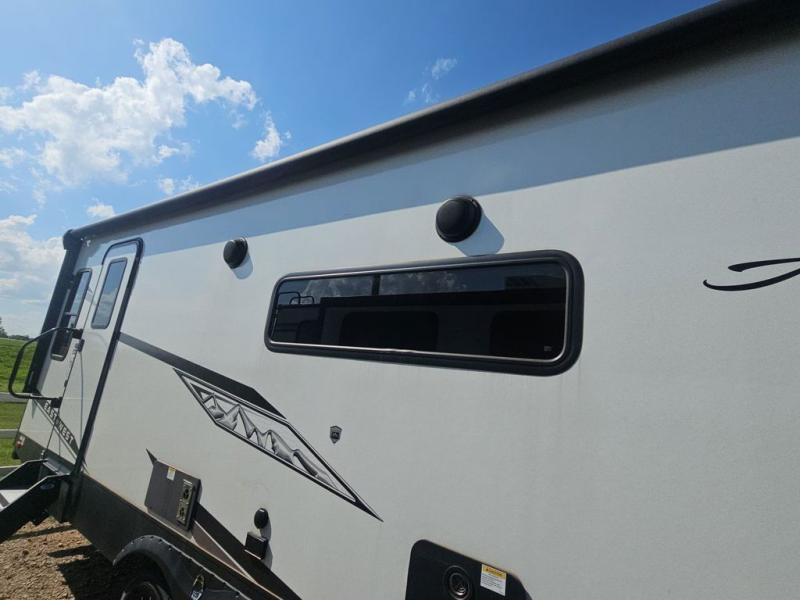 Each Alta travel trailer by EAST TO WEST is constructed with a 5" vacuum bonded roof, flush floor slide outs (where applicable), and diamond plate front rock guard for added protection. Outside, you'll find marine-grade exterior speakers, a universal docking station, and back-up camera prep that can be added to make maneuvering in and out of campgrounds easier than ever. There are USB charging stations for your tablet or phone and designer solid surface countertops you are sure to love. The furnace and 15,000 BTU ducted A/C with quick cool will keep you comfortable in any season, and the 81" interior ceiling height will provide ample space to move about without feeling confined. Start a new adventure in an Alta travel trailer today!