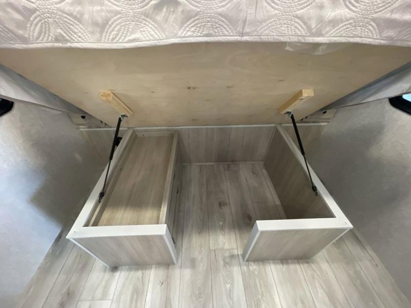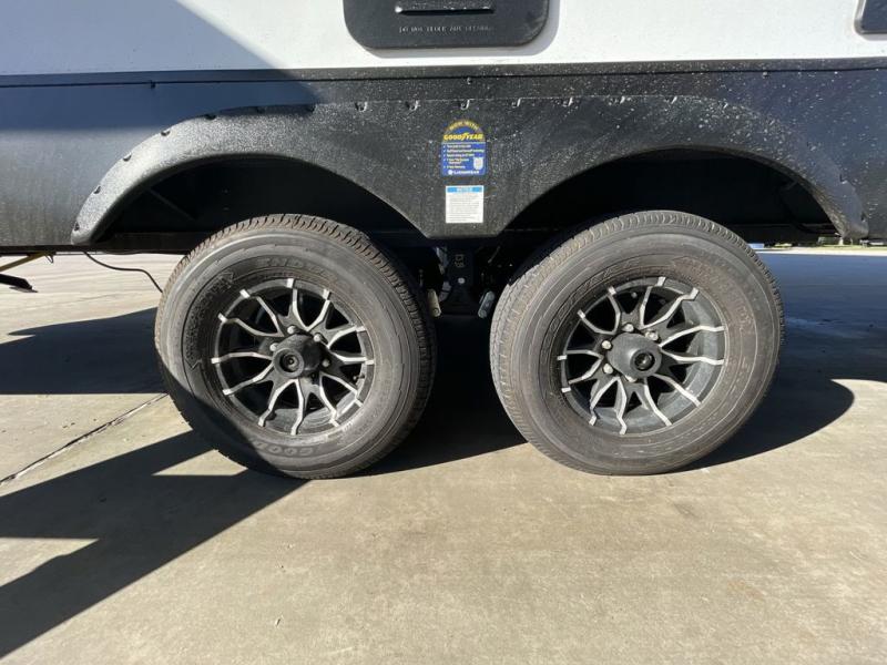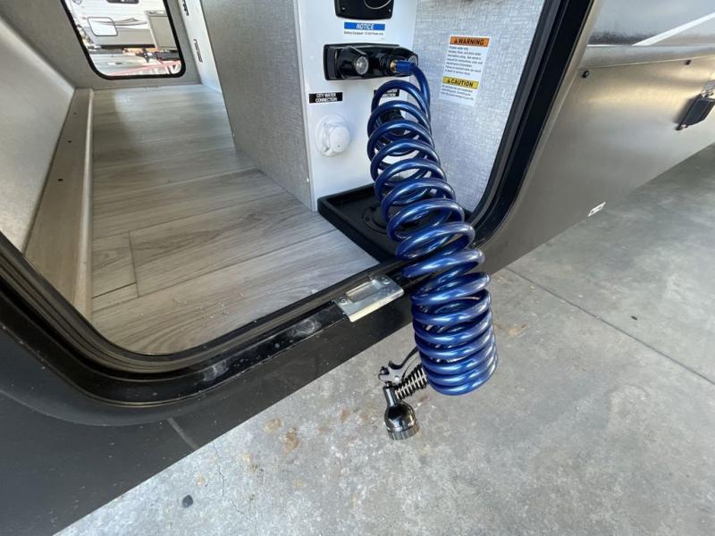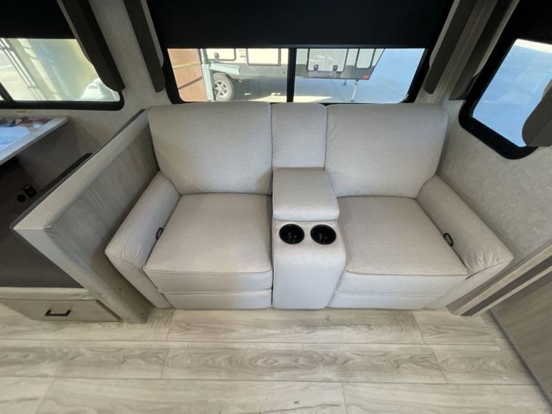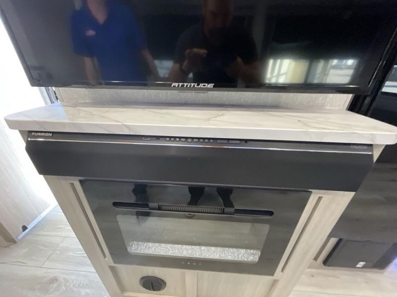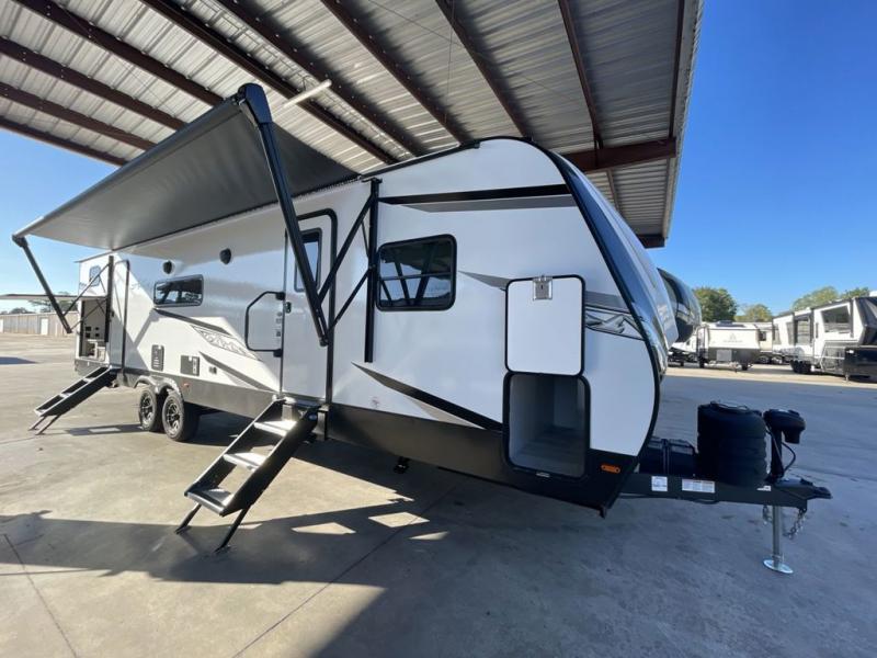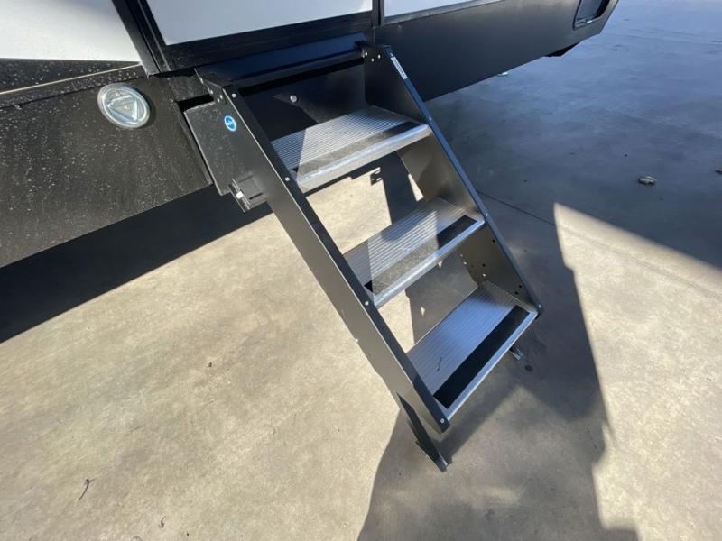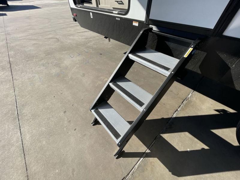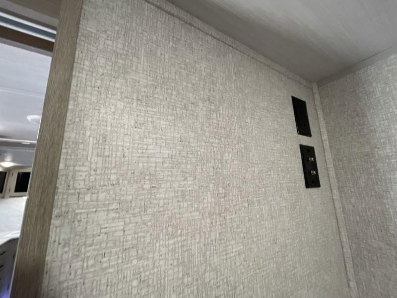 If you're looking for a travel trailer to take tailgating, this Alta model is the one! After you've unloaded the pass-through storage and set up the 21' power awning, start lunch on the outside kitchen! Since there are dual entry doors you can enter in through the main living area, or the full bath for convenience. The little ones are sure to spend most of their time in the rear bunkhouse that includes a flip-up bunk under the sofa, plus a second bunk across the room. The adults can visit at the booth dinette or on the tri-fold sofa, and check out the front private bedroom with sliding doors and a king bed for all-around comfort!