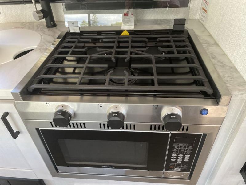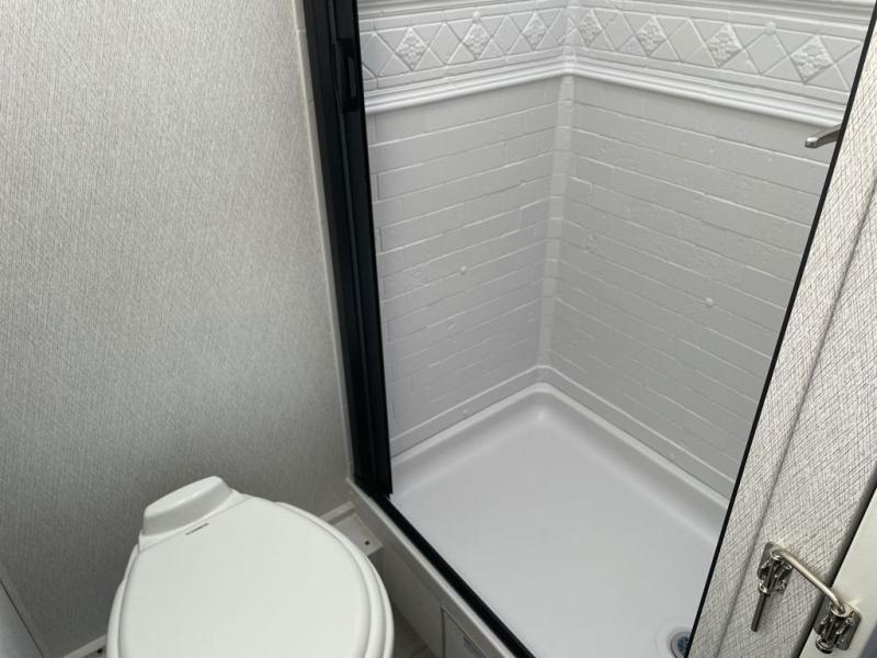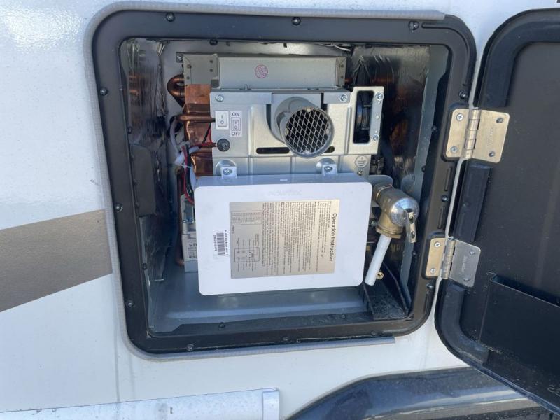 The journey will be oh-so enjoyable when you use this Entrada Class C gas motorhome to explore! You will be able to create meals each day that you are on the road because the kitchen has everything you will need, like a convection microwave, a round sink, a cooktop, a flip-up countertop, and a 10.7-cubic foot refrigerator. There is even a pantry/wardrobe for you to use to store spices, chips, or canned goods. Across from the queen bed slide, you'll find a private shower and toilet room so that you can get cleaned up in the morning, and the vanity with medicine cabinet is located just outside the bathroom so that someone can brush their teeth while another is showering.