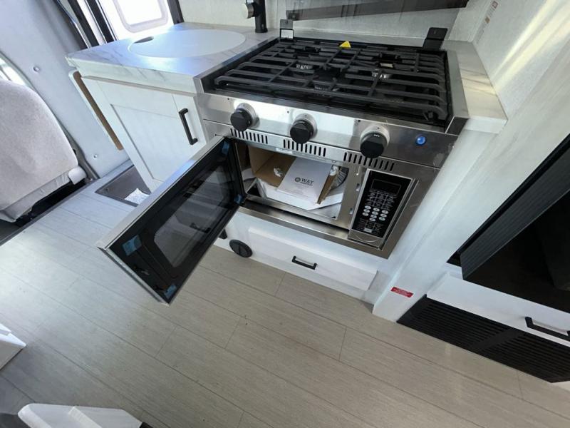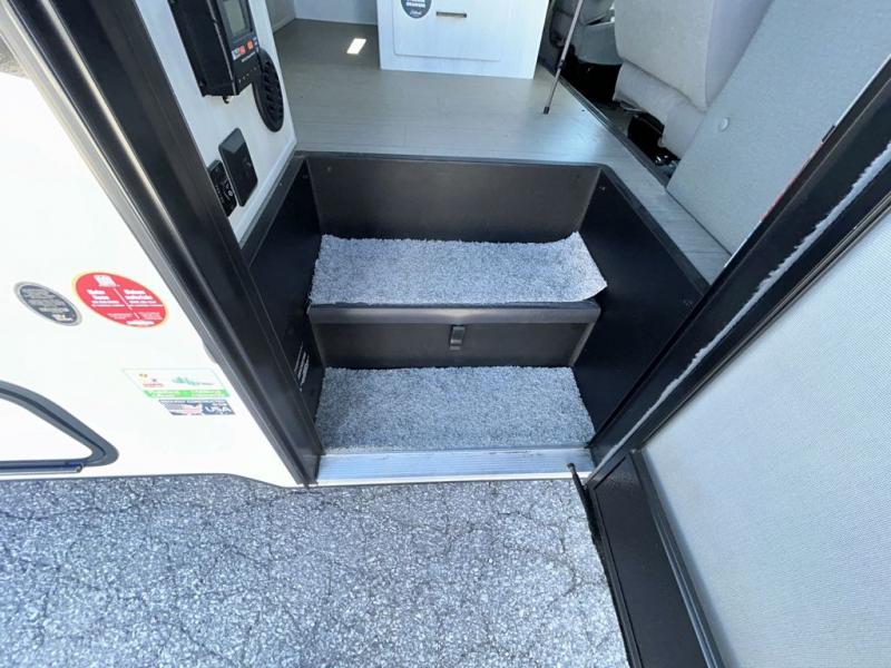 With any Entrada Class C gas motorhome from EAST TO WEST, the construction consists of a completely laminated coach, a one-piece molded fiberglass front cap, 2" thick sidewalls with Azdel composite exterior, a Dicor Diflex ll TPO roof, and integrated entry step. Some of the Entrada value package features include 12V tank heaters to camp during the cooler months, the Winegard Air 360+, plus backup and sideview cameras with monitor for safety on and off the road. The interior offers a 7-foot interior height for a spacious feel, and hardwood shaker style cabinets. Choose an Entrada for its tasteful design, attention to detail, bright interior and/or affordable price-point!