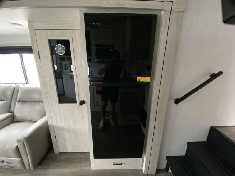 At any point you want to get away to your favorite secluded spot, you can grab your EAST TO WEST Tandara fifth wheel and head out because it has a 4 Seasons Package that will keep you protected during all seasons! There is a MORryde CRE 3000® suspension that will make traveling smooth, and the MORryde StepAbove entry steps provide a stable entrance into the unit. The Tandara has been prepped for a rearview camera, and the interior is very stylish with its artisan maple décor. Some of the luxury features you'll find are the shaker style cabinet doors, deep-seated stainless steel farmhouse sink, plus dimmable LED lights in the living area, kitchen, and bedroom!