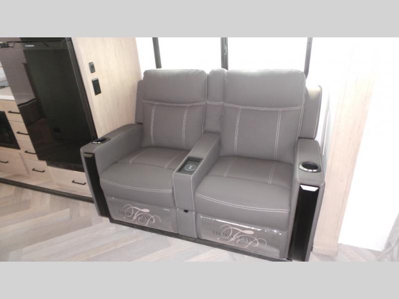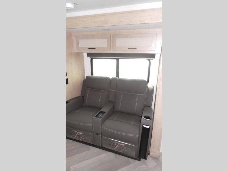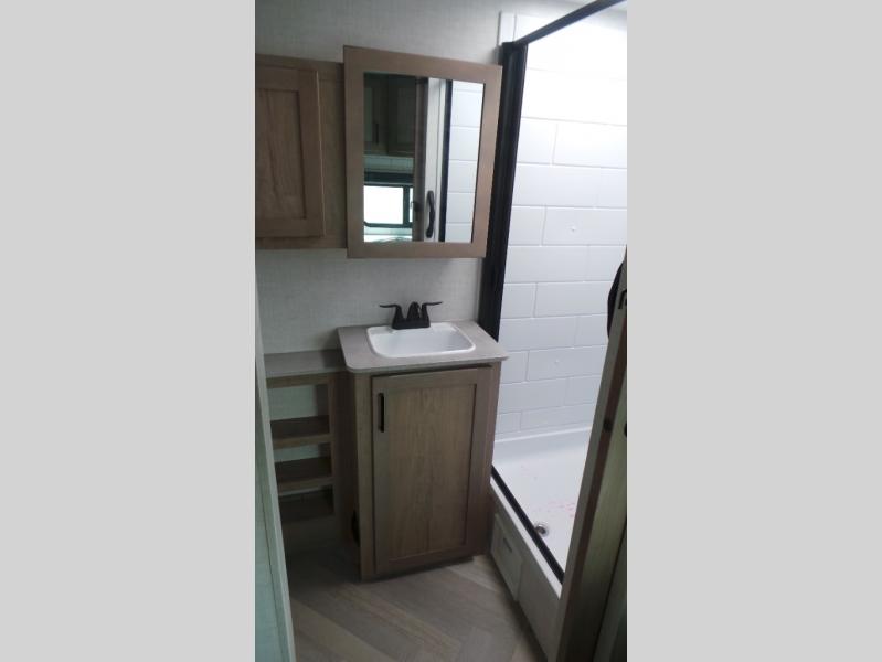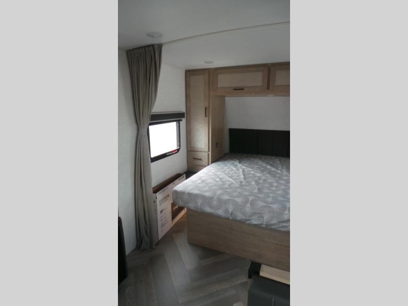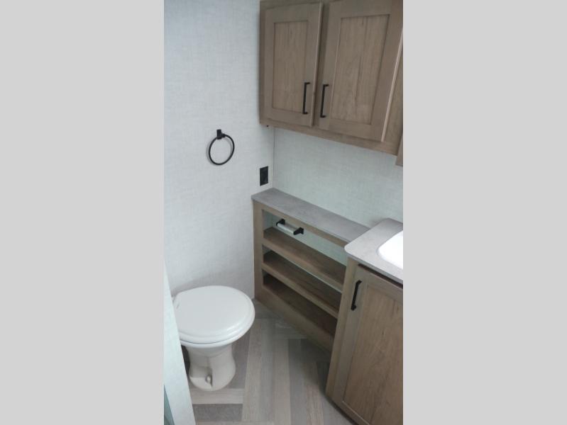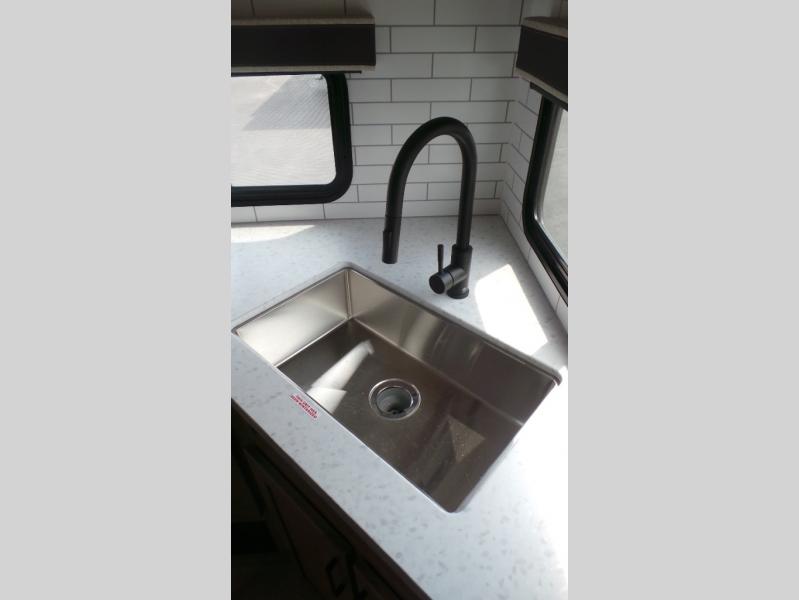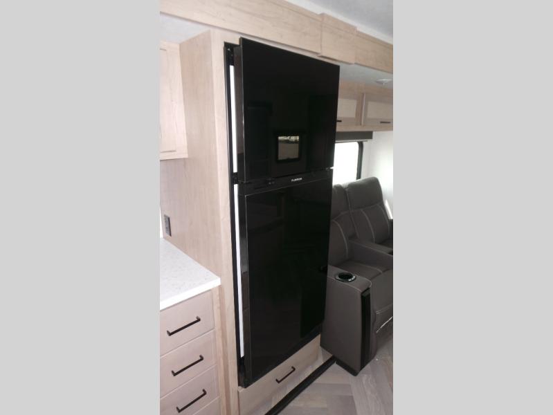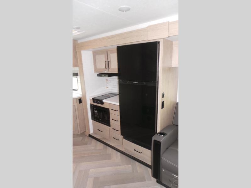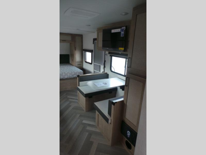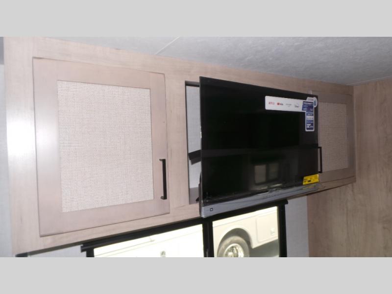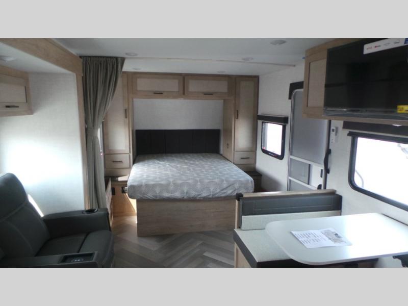 Featuring a residential queen size bed, plenty of countertop space in the fully equipped rear kitchen with a full-size pantry, a 3-piece bathroom, spacious living area with a leg-less dinette and theater seating conveniently placed across from the television, the 22MLQ delivers all the essentials you need on the road to stay comfortable and happy.
